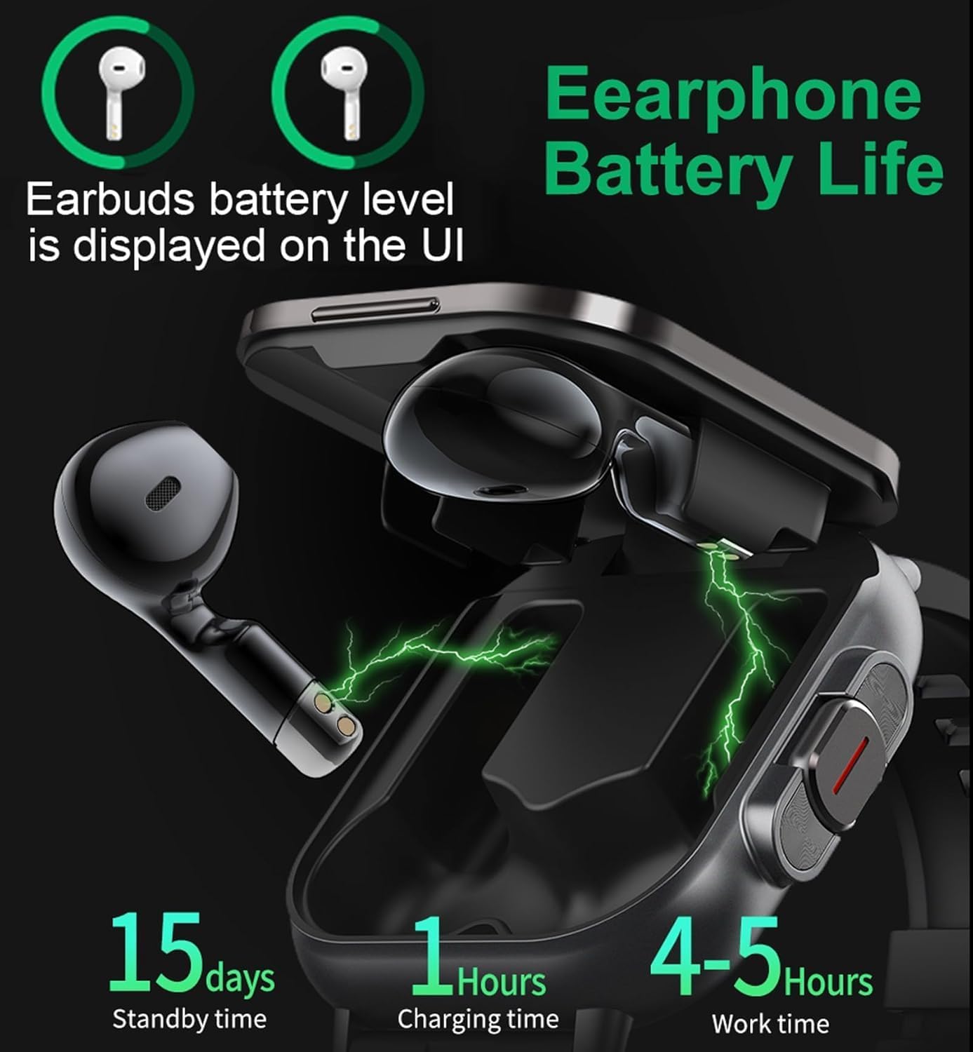 الساعة الذكية المقاومة للماء وسماعات الأذن: تتميز بتصنيف IP67 لمقاومة الماء مما يضمن المتانة في جميع الظروف الجوية. مثالية للتدريبات أو السباحة أو المغامرات الخارجية مع تتبع اللياقة البدنية الموثوق. ساعة أوتوماتيكية للرجال