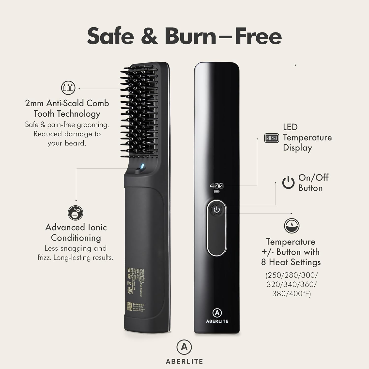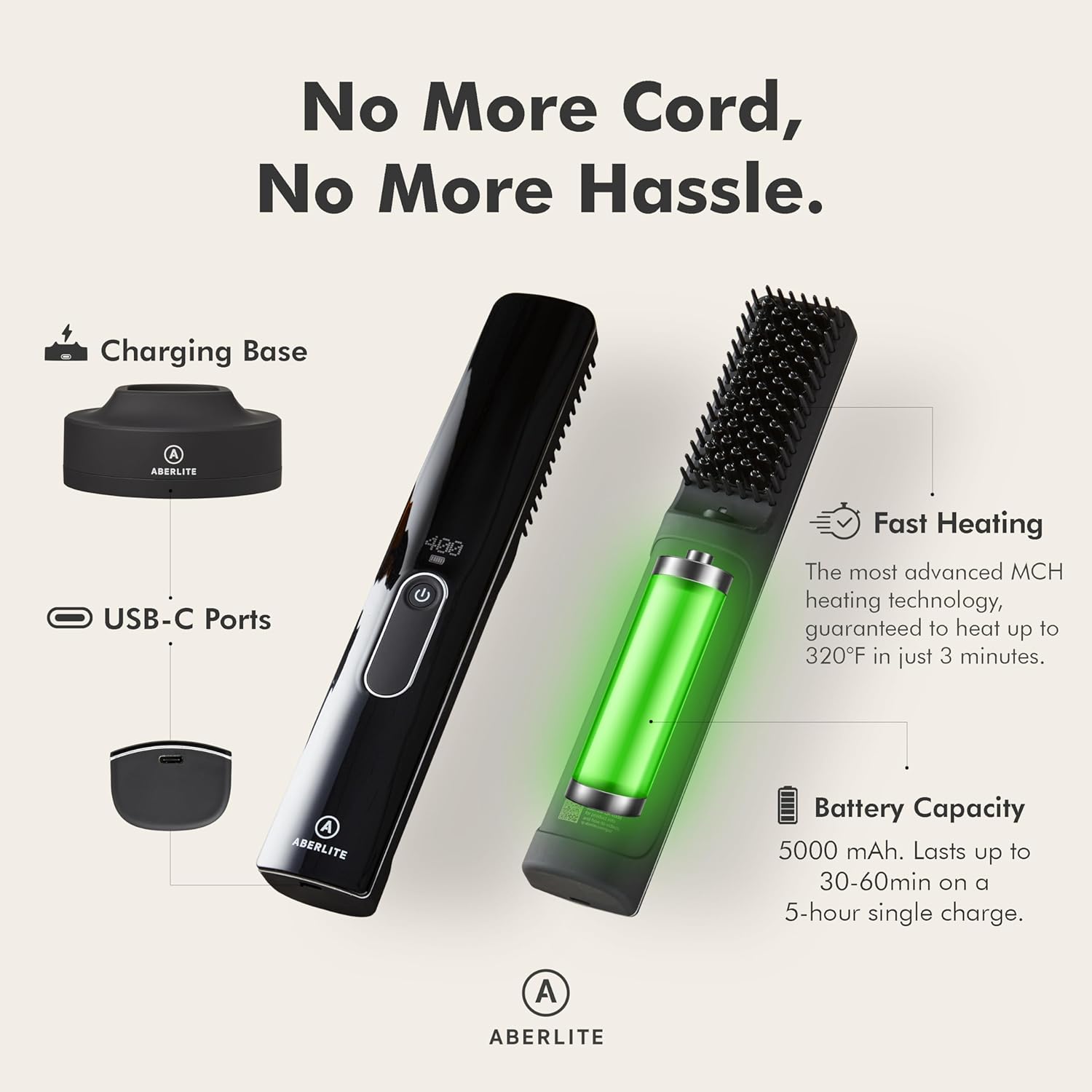 ابرليتي مكواة فرد الشعر اللاسلكية من جو 2 للحية والشعر، مشط اسنان بدون الم لترطيب ايوني متطور، مكواة فرد الشعر اللاسلكية، مشط فرشاة تسخين