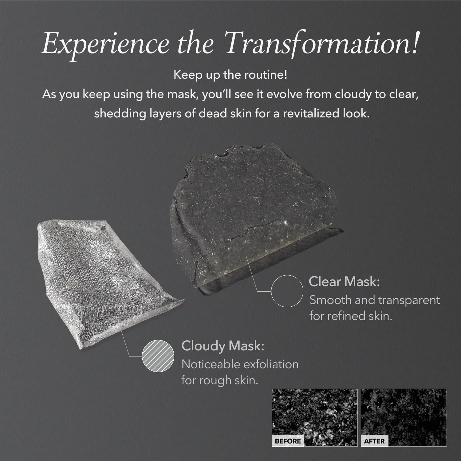 قناع تقشير فعال للوجه: تم تركيبه للتقشير بلطف وإزالة خلايا الجلد الميتة والشوائب للحصول على بشرة مصقولة.