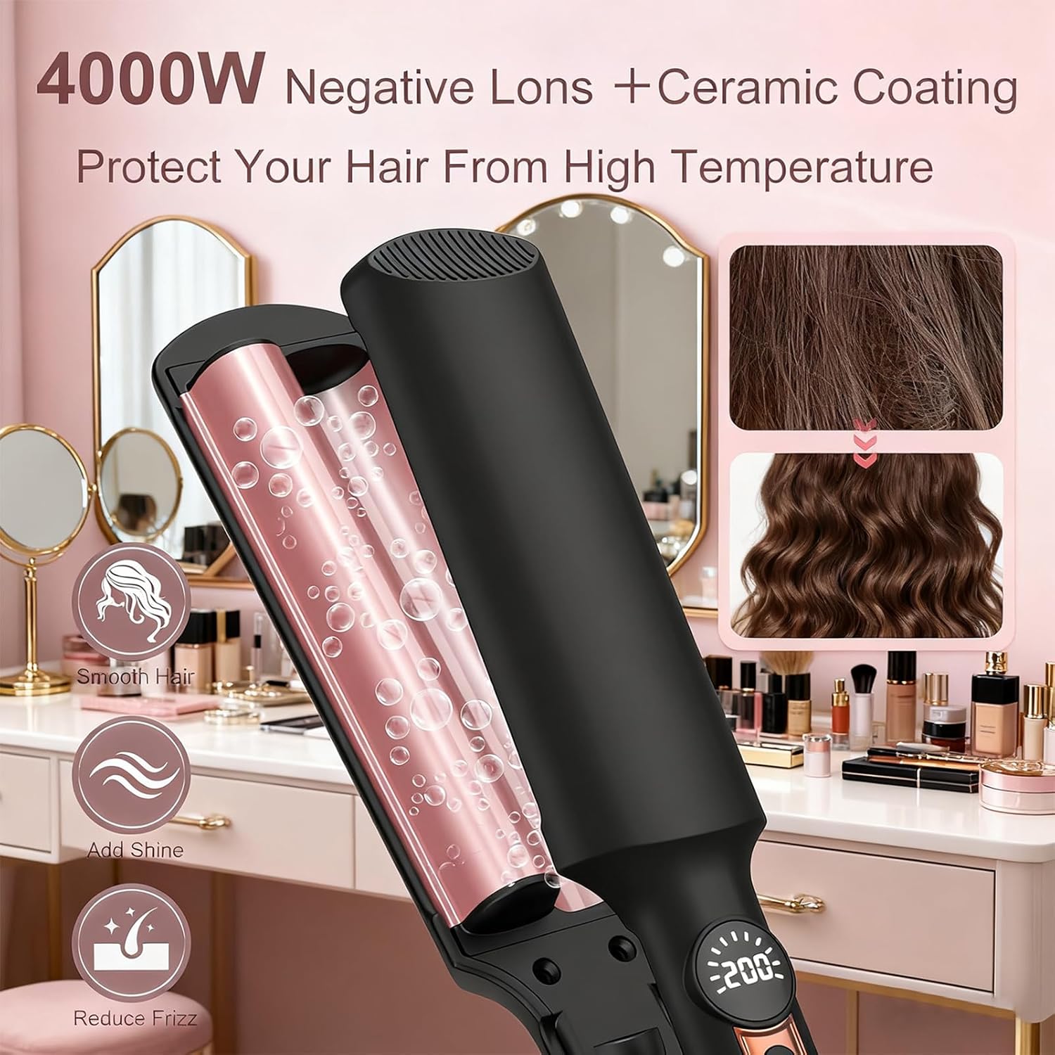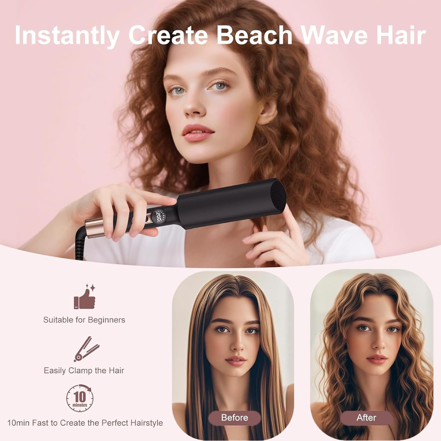 تصفيف يدوم لمدة 8 ساعات واستخدام متعدد الاستخدامات: تستخدم أداة تجعيد شعر حورية البحر تقنية قفل درجة الحرارة الثابتة، ويمكن أن تدوم الأمواج لمدة 8-12 ساعة دون أن تتفكك؛ مناسبة لتصفيف الشعر القصير والشعر المتوسط والشعر الطويل؛ يمكن لمكواة التجعيد تلبية احتياجات التصفيف للمناسبات المختلفة مثل العمل اليومي ونزهات عطلة نهاية الأسبوع والعطلات على شاطئ البحر، مما يحل تمامًا مشكلة “التصفيف الذي لا يدوم طويلاً طويلة طويلة ”
