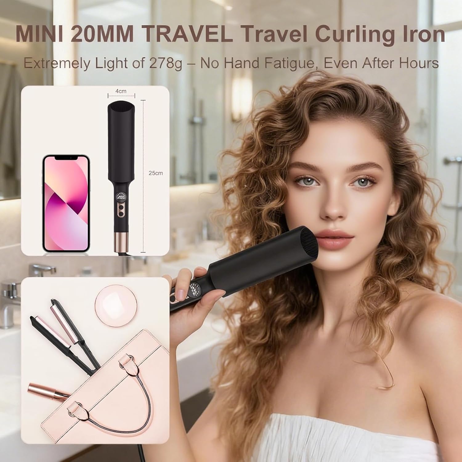 مكواة شعر صغيرة محمولة وجهد مزدوج: مكواة تجعيد الشعر صغيرة الحجم ومريحة للسفر والتنقل. يتميز بقفل آمن ويمكن تخزينه في وضع مستقيم بعد التبريد. يمكن وضعها بسهولة في حقيبة المكياج أو الأمتعة أو حتى جيبك. في 5 دقائق فقط، يمكنك تحقيق موجات مستوحاة من العطلات في فندقك. أداة تمويج الشعر هي الخيار الأمثل لرحلات العمل والسفر العالمي.