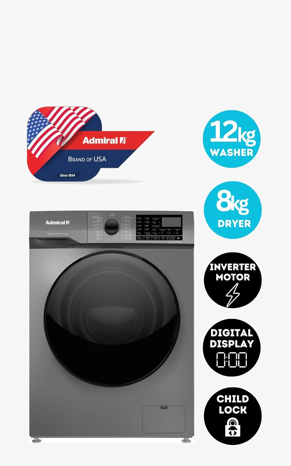 ادميرال غسالة تحميل أمامي 12 كجم 8 كجم مجفف 1400 دورة في الدقيقة