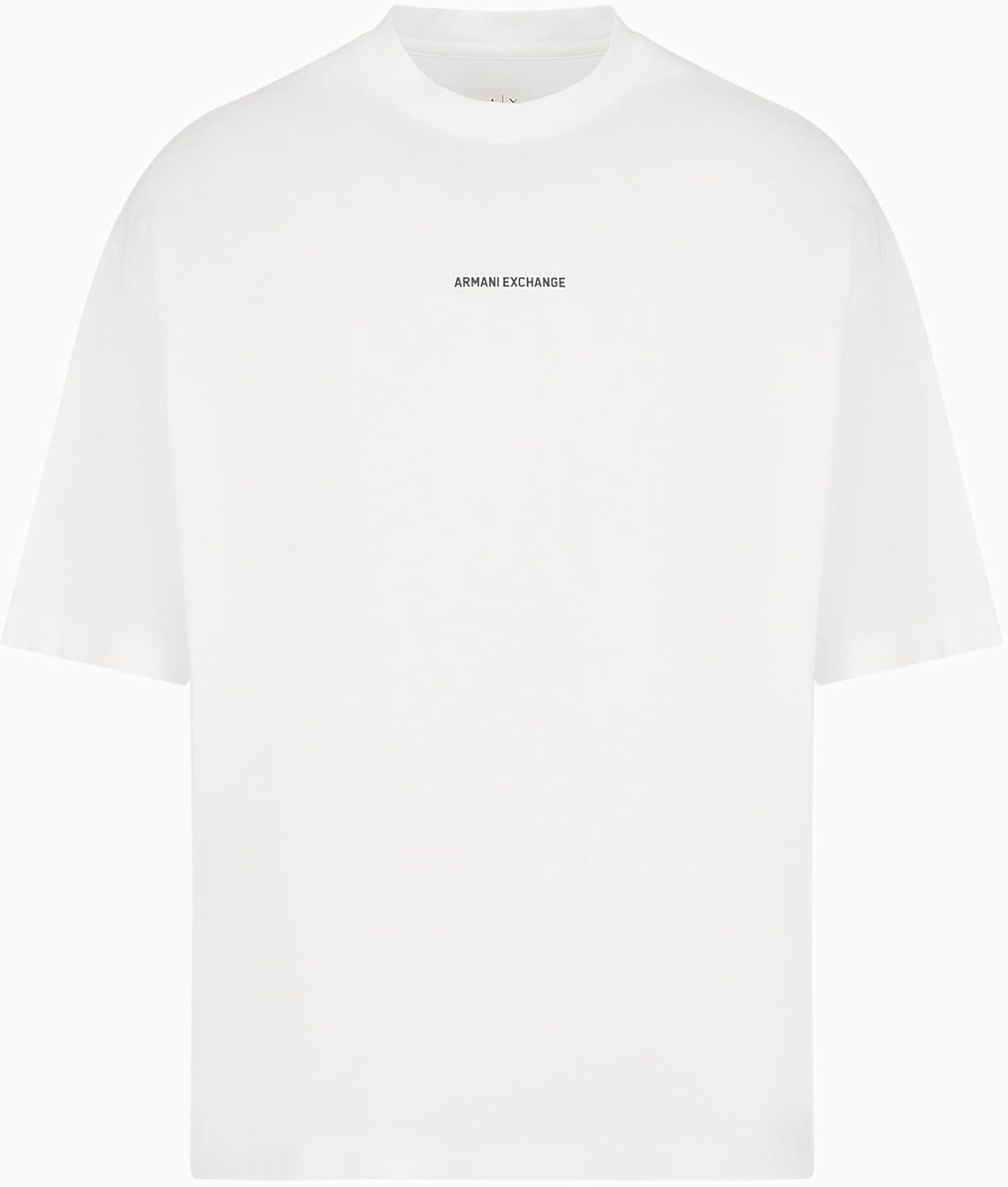 ارماني اكستجينج تي شيرت للرجال بمقاس كبير ونص مركزي على الامام والخلف