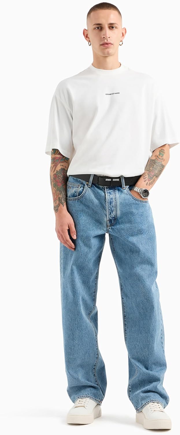 شراء ارماني اكستجينج تي شيرت للرجال بمقاس كبير ونص مركزي على الامام والخلف اون لاين من امازون او نون الامارات ارماني اكستجينج تي شيرت للرجال بمقاس كبير ونص مركزي على الامام والخلف
