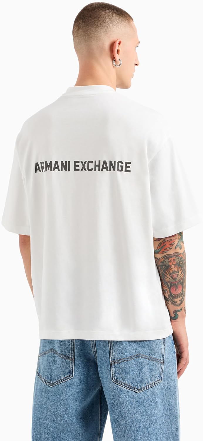 كن أول من يقيم “ارماني اكستجينج تي شيرت للرجال بمقاس كبير ونص مركزي على الامام والخلف”