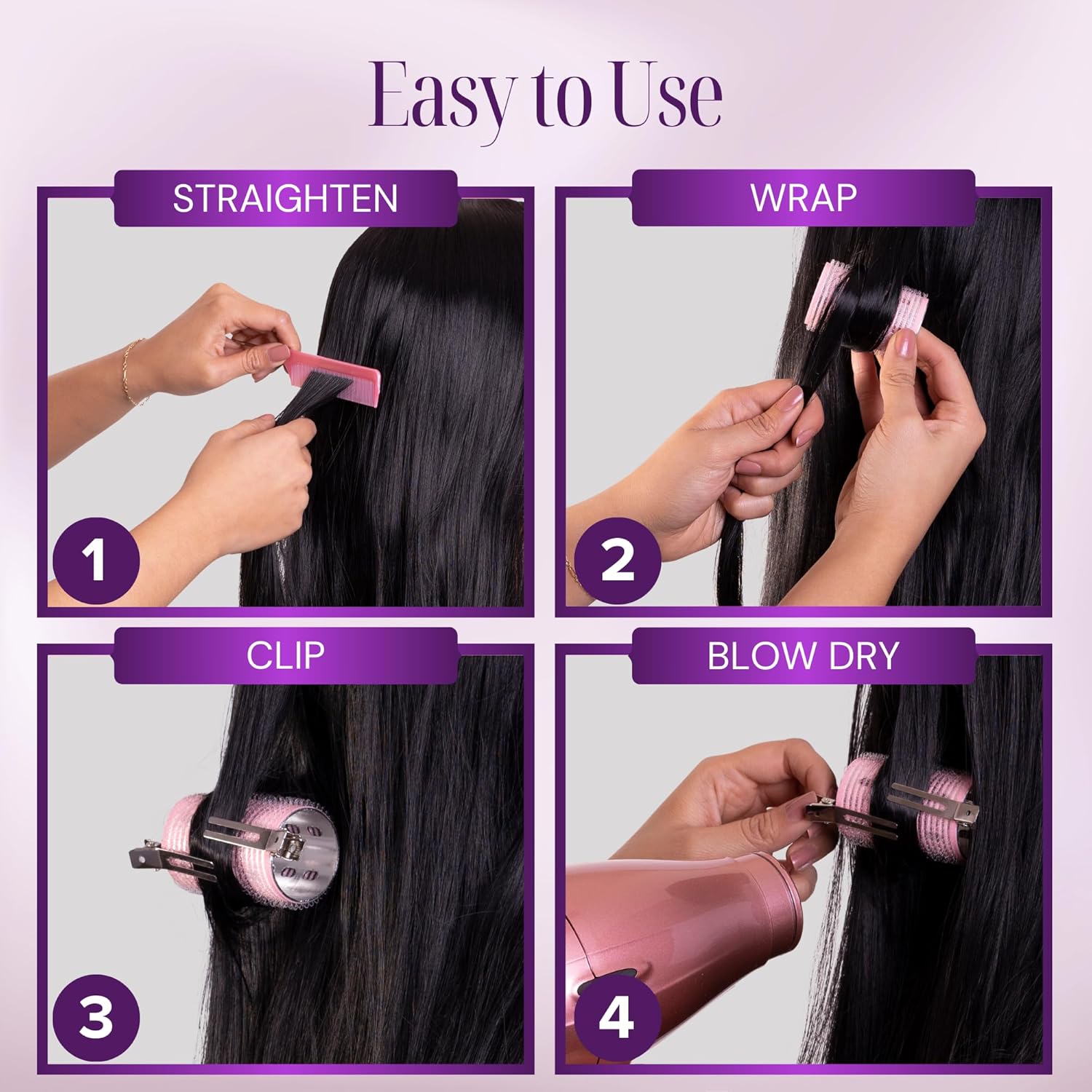 نحن نؤمن بأن تجعيد الشعر لا يجب أن يكون أمرًا مستهلكًا للوقت. هذا تصفيف شعرك الجميل لا يجب أن يلتهم صباحك بالكامل. لهذا السبب صممنا بكرات تجعيد الشعر التي توفر لك الوقت الثمين. تصميم ذاتي الإمساك يعني أنك لست مضطرًا إلى استخدام المشابك مع بكرات الشعر الفيلكرو. ببساطة قم بلفها في مكانها، وضعي مجفف الشعر على إعداد الحرارة المتوسطة، وقم بتمريره على شعرك، وانتظري لبضع دقائق حتى يعمل القلب الحراري بسحره، واكشف عن المغناطيسات المجعدة.