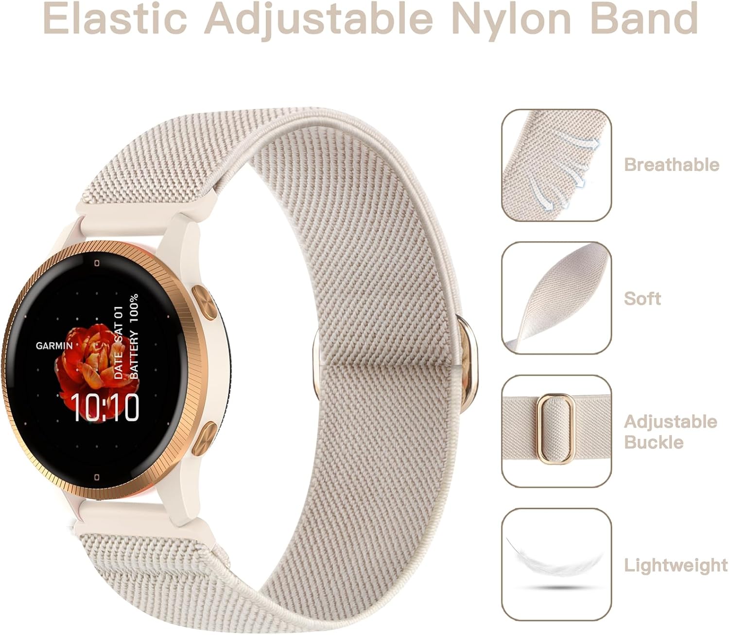 اساور ساعة نايلون قابلة للتمدد متوافقة مع جارمين فينو 2S/فيفو اكتيف 4S/فينو 3S/فيفوموف 3S وفيفوموف 3S، سوار قابل للتعديل 18 ملم لساعة جارمين فوررنر 265S/255S/255S ميوزيك للنساء والرجال من 5 قطع