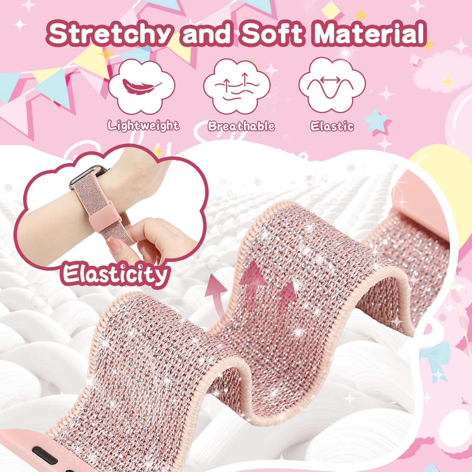 اساور قابلة للتمدد من سيلاكور متوافقة مع سوار ساعة ابل 38 ملم 40 ملم 41 ملم 42 ملم 44 ملم 45 ملم 46 ملم 49 ملم، سوار ناعم مرن لامع لسلسلة اي ووتش 10 9 8 7 6 5 4 3 SE SE2 SE3 للبنات والاولاد