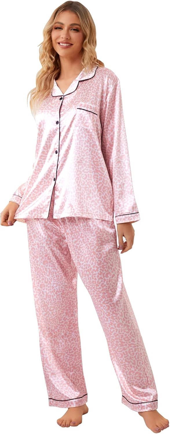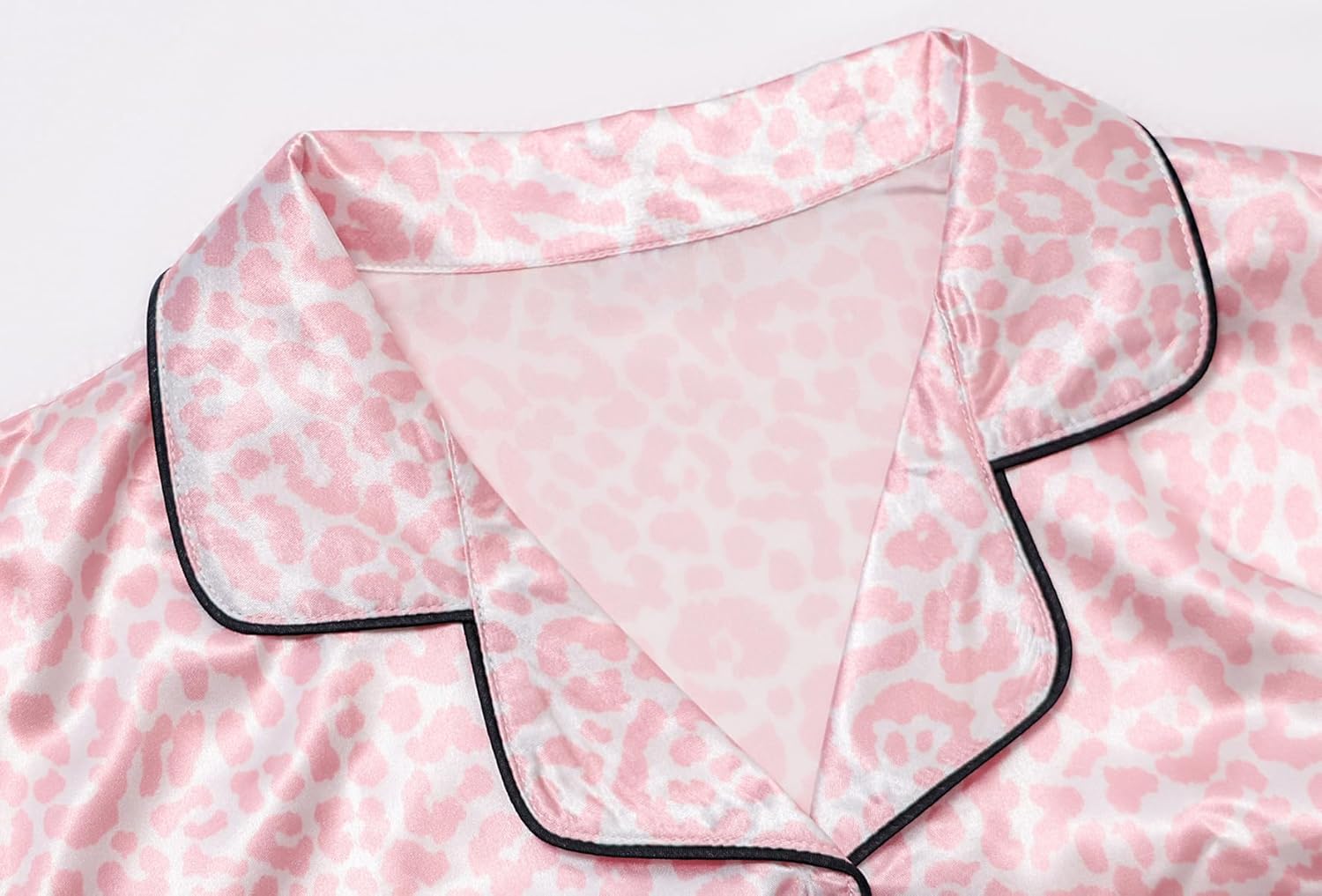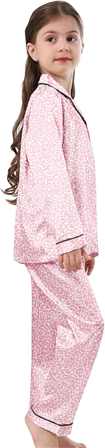 اس سي اتش بي بي بي تي ايه طقم بيجامة من الساتان للبنات، طقم بيجامة نوم من الحرير بازرار سفلية، طقم بيجامات نوم من قطعتين بلون بينك ليوبارد، 4-5T = علامة 120، تي – بينك ليوبارد، 4-5 سنوات, تي – بينك