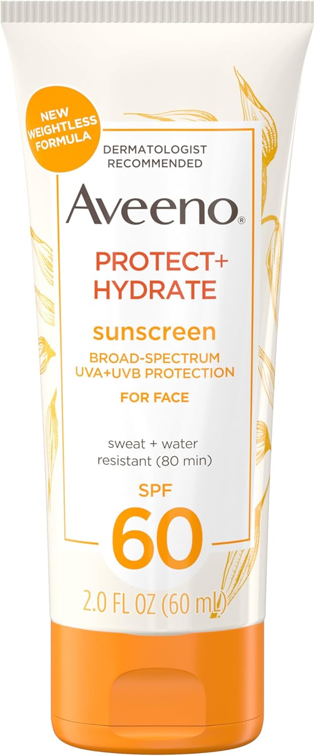 واقي من الشمس بحجم مناسب للسفر: زجاجة واحدة بسعة 2 اونصة سائلة من لوشن افينو Protect + Hydrate مرطب للوقاية من الشمس للوجه مع طيف واسع SPF 60 للمساعدة في حماية البشرة وتوفير ترطيب طوال اليوم