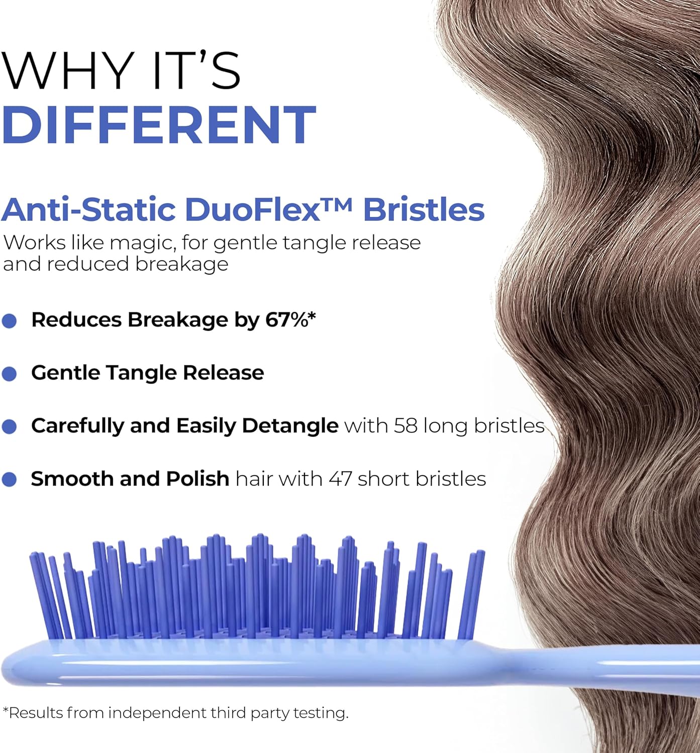 فك تشابك الشعر بدون مجهود وبدون ألم: قم بفك فرشاة الشعر بشعيرات دوفليكس المضادة للكهرباء الساكنة التي تقلل من التقصف مع إزالة التشابك بلطف، مثالية لأنواع الشعر المجعد أو السميك أو الناعم.