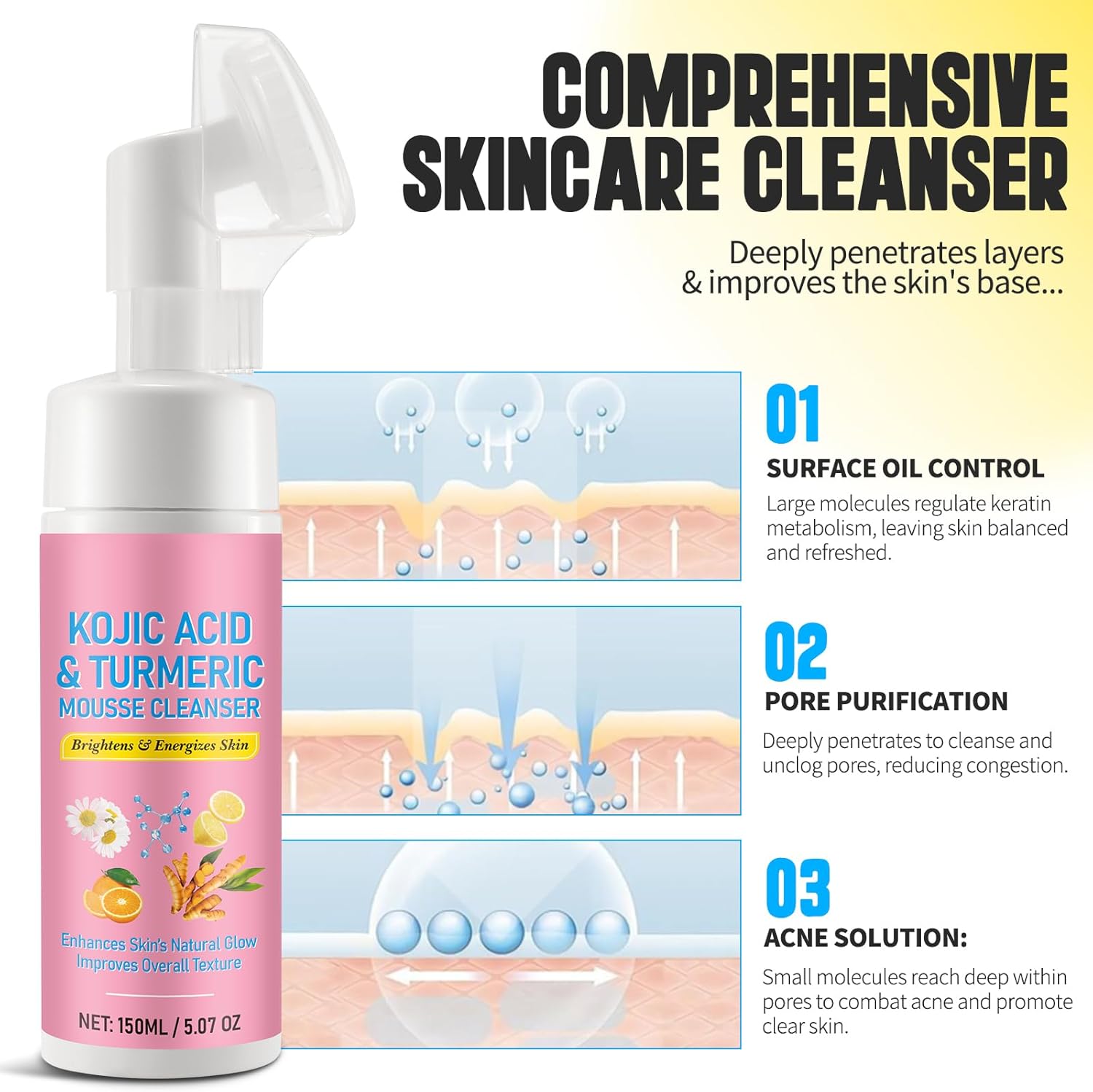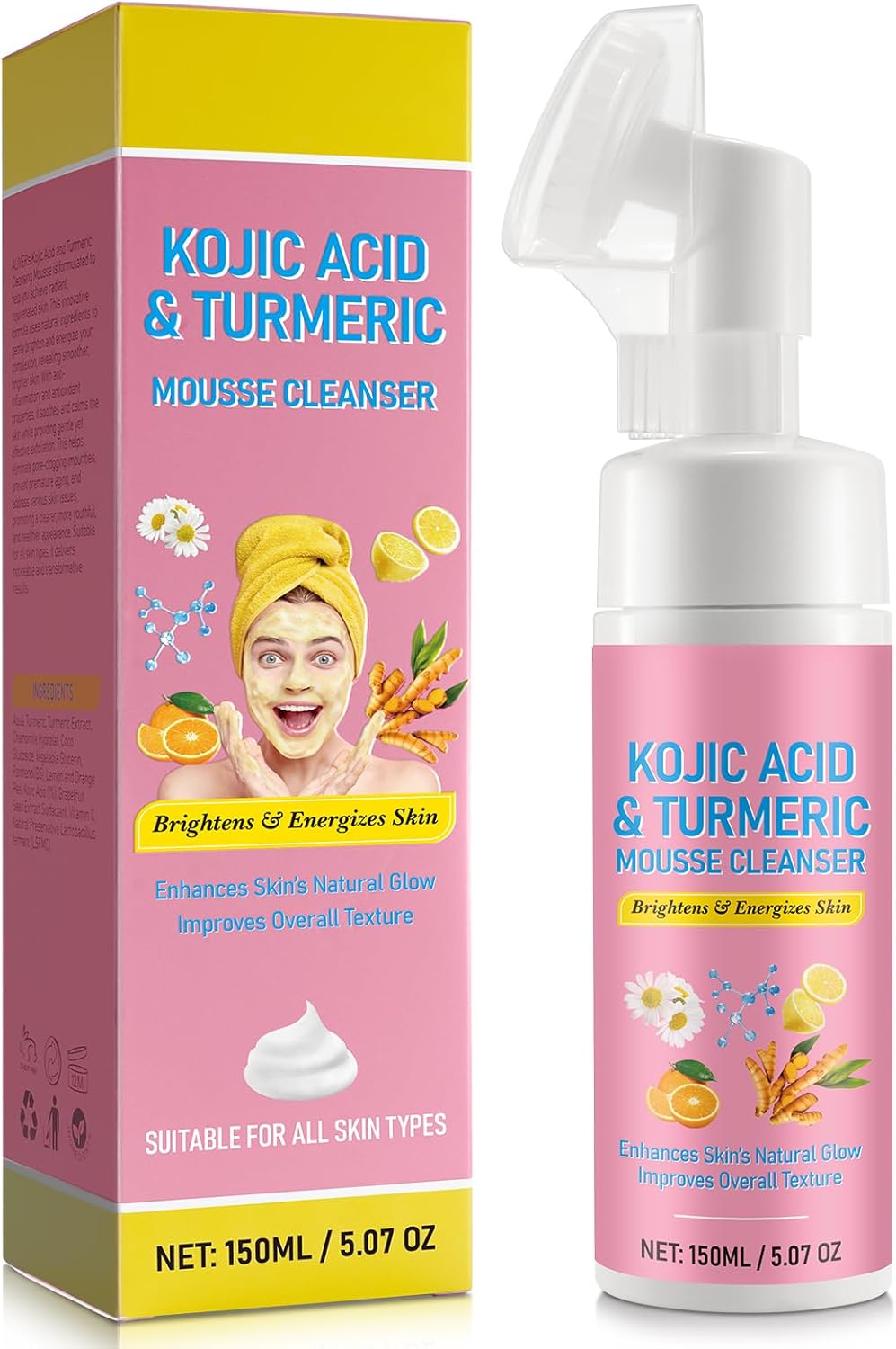 تفتيح وترطيب: تم تصميم تركيبة موس منظف حمض الكوجيك والكركم لتفتيح وترطيب بشرتك وتعزيز إشراقها الطبيعي وتحسين الملمس العام.