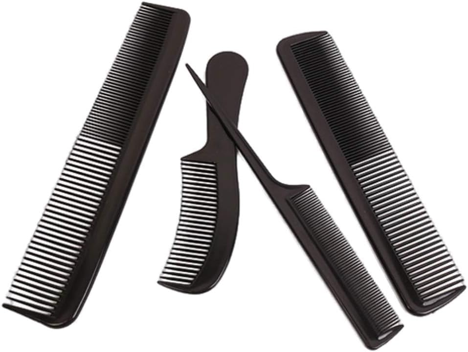 اليكدون مجموعة امشاط تصفيف الشعر، امشاط حلاقة احترافية للنساء والرجال، مشط تصفيف شعر مضاد للكهرباء الساكنة ومقاوم للحرارة، 4 قطع، مشط للشارب، مشط تصفيف عام (اسود)