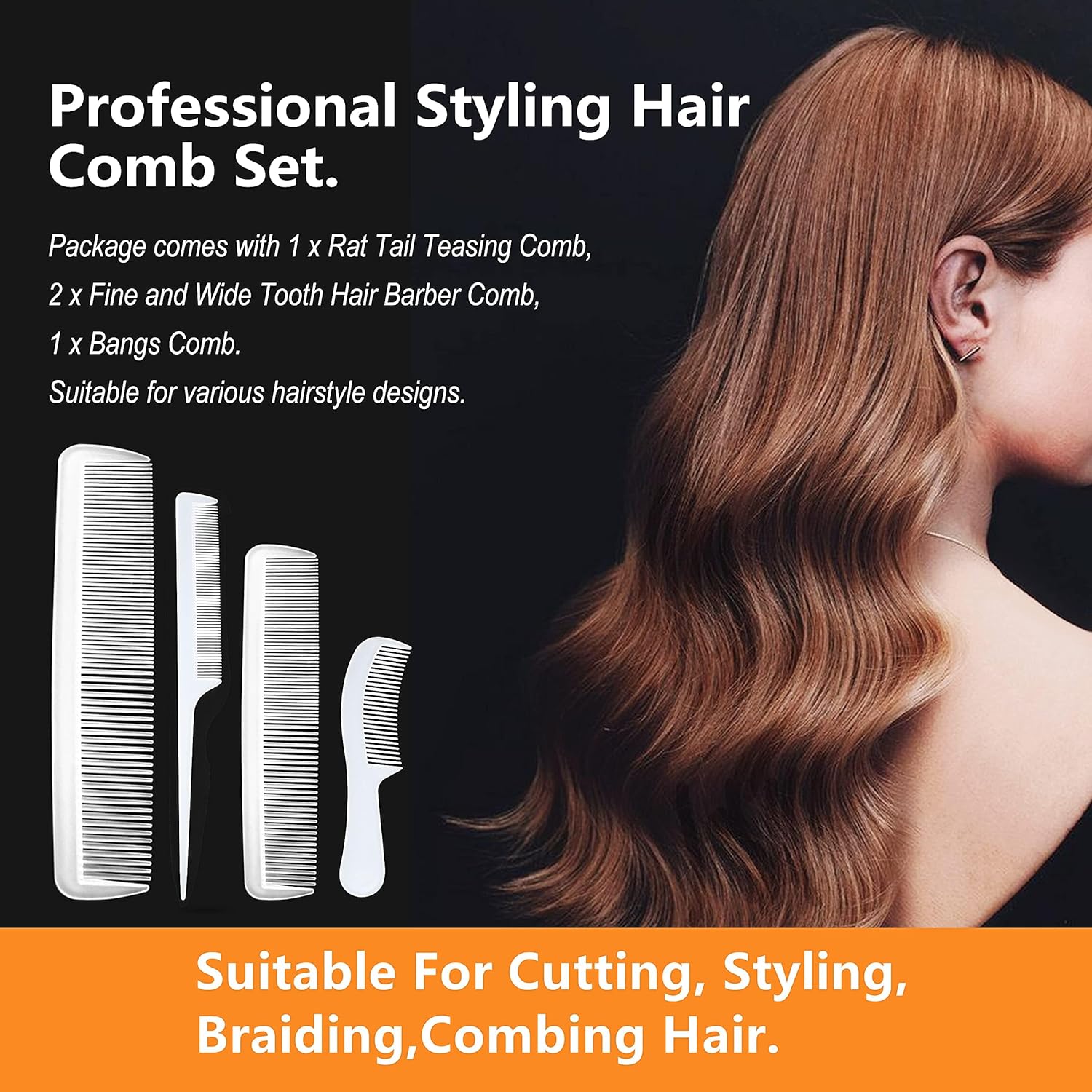 ‍♂️ مجموعة مشط حلاقة احترافية – ارتقِ بتصفيف شعرك مع هذه المجموعة، بما في ذلك 1 × مشط إغاظة ذيل الفئران، 2 × مشط حلاقة الشعر ذو الأسنان الدقيقة والعريضة، و1 × مشط غرة. مثالية لمجموعة متنوعة من تصميمات تصفيفات الشعر.