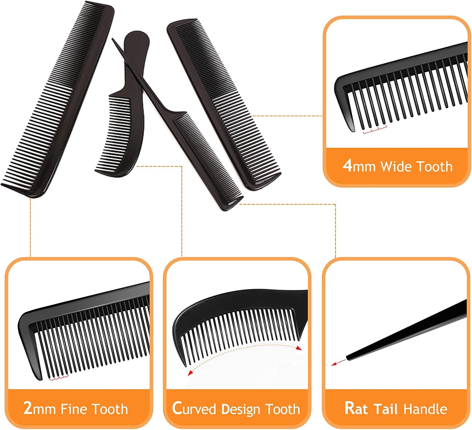 💪 مادة متينة – مصنوعة من مواد لطيفة، هذه الأمشاط أسنان ناعمة ومرنة تتوافق مع الشعر دون أن تنكسر بسهولة. مع مقاومة درجات الحرارة العالية وخصائص مضادة للكهرباء الساكنة وميزات سهلة التنظيف، تم تصميم هذه الأمشاط لتدوم طويلاً.