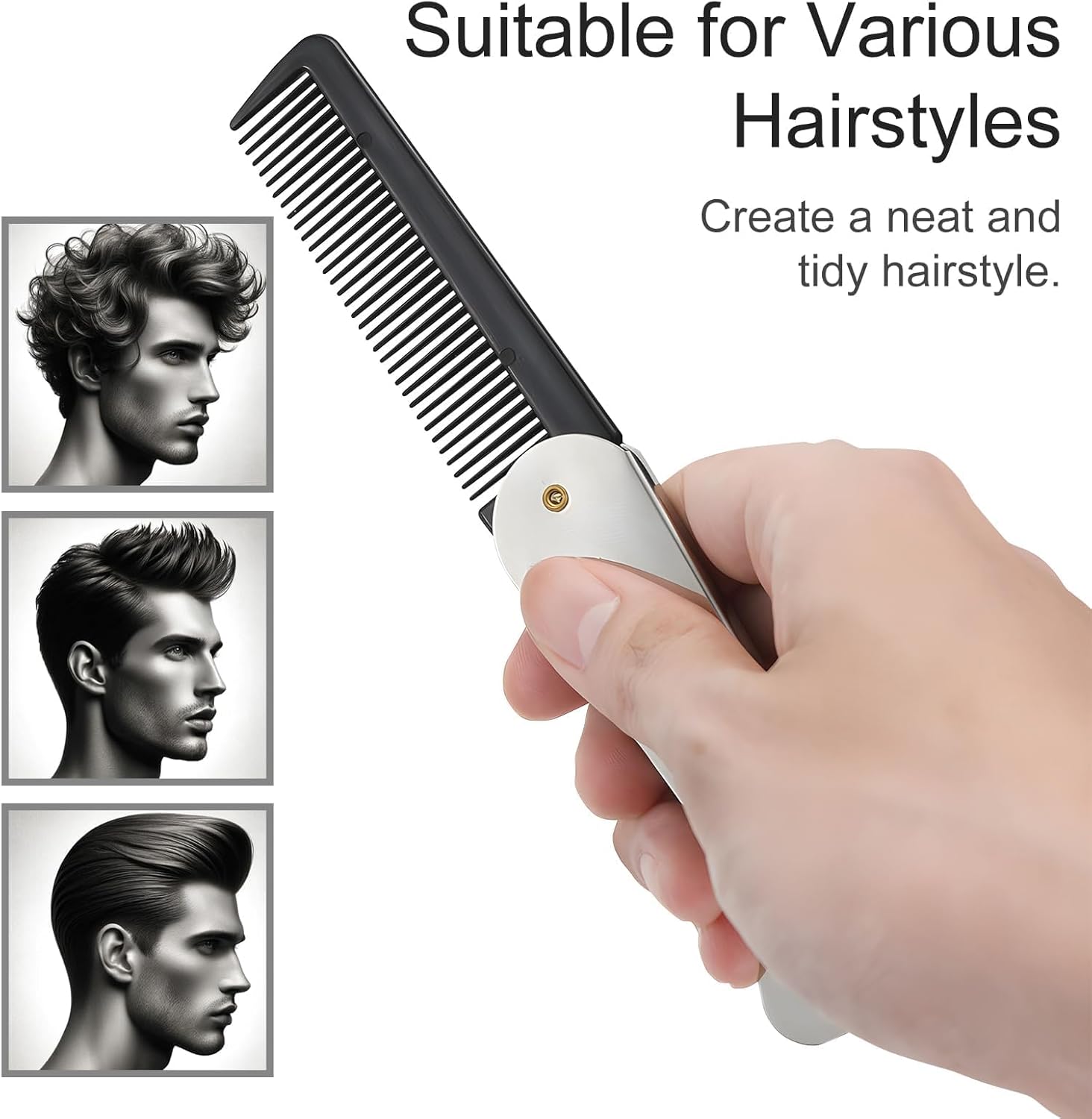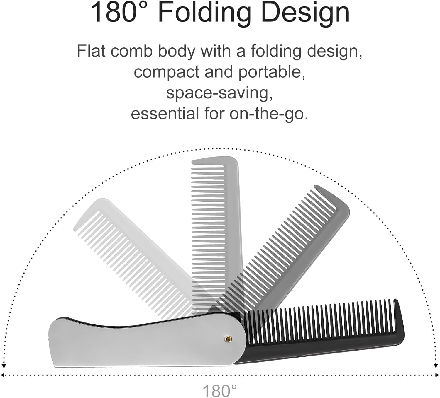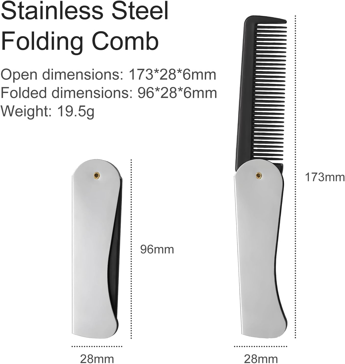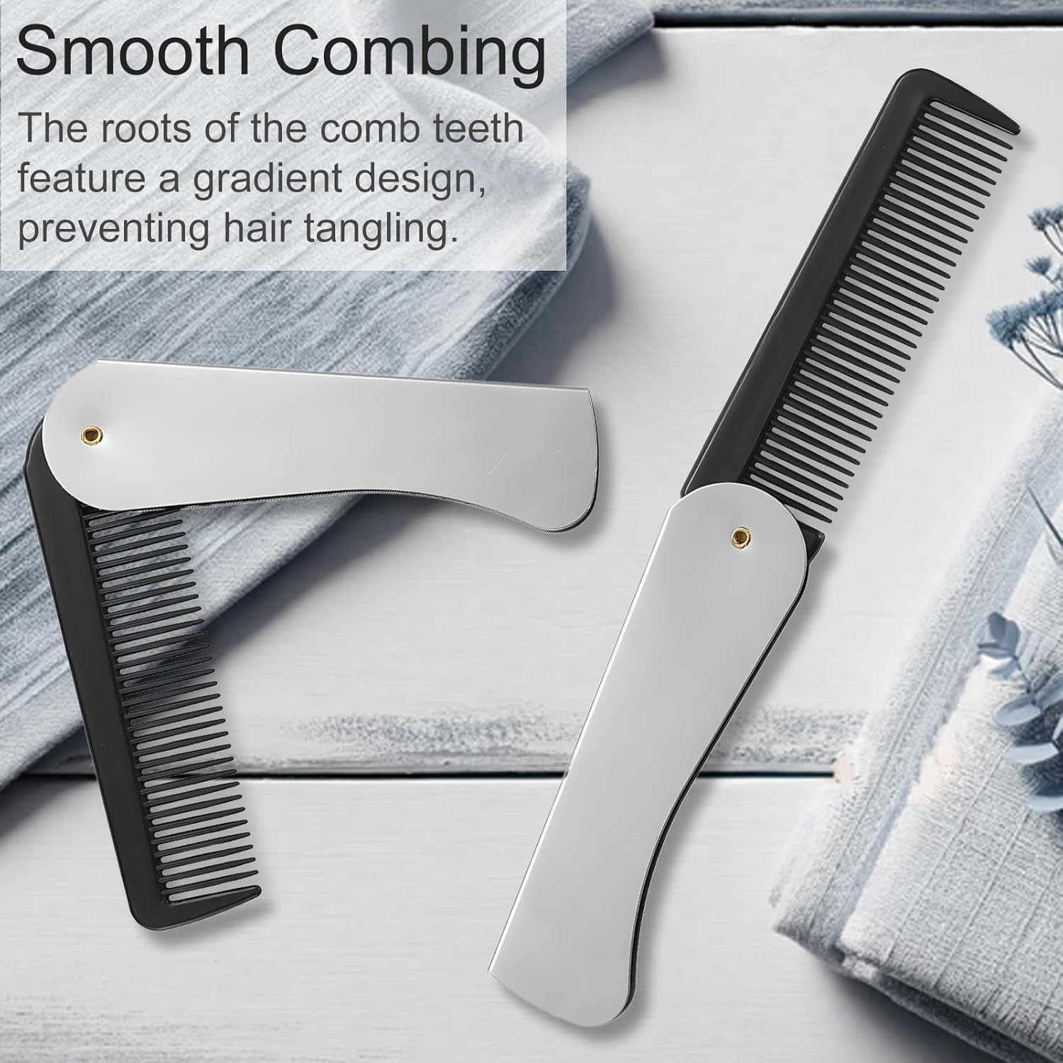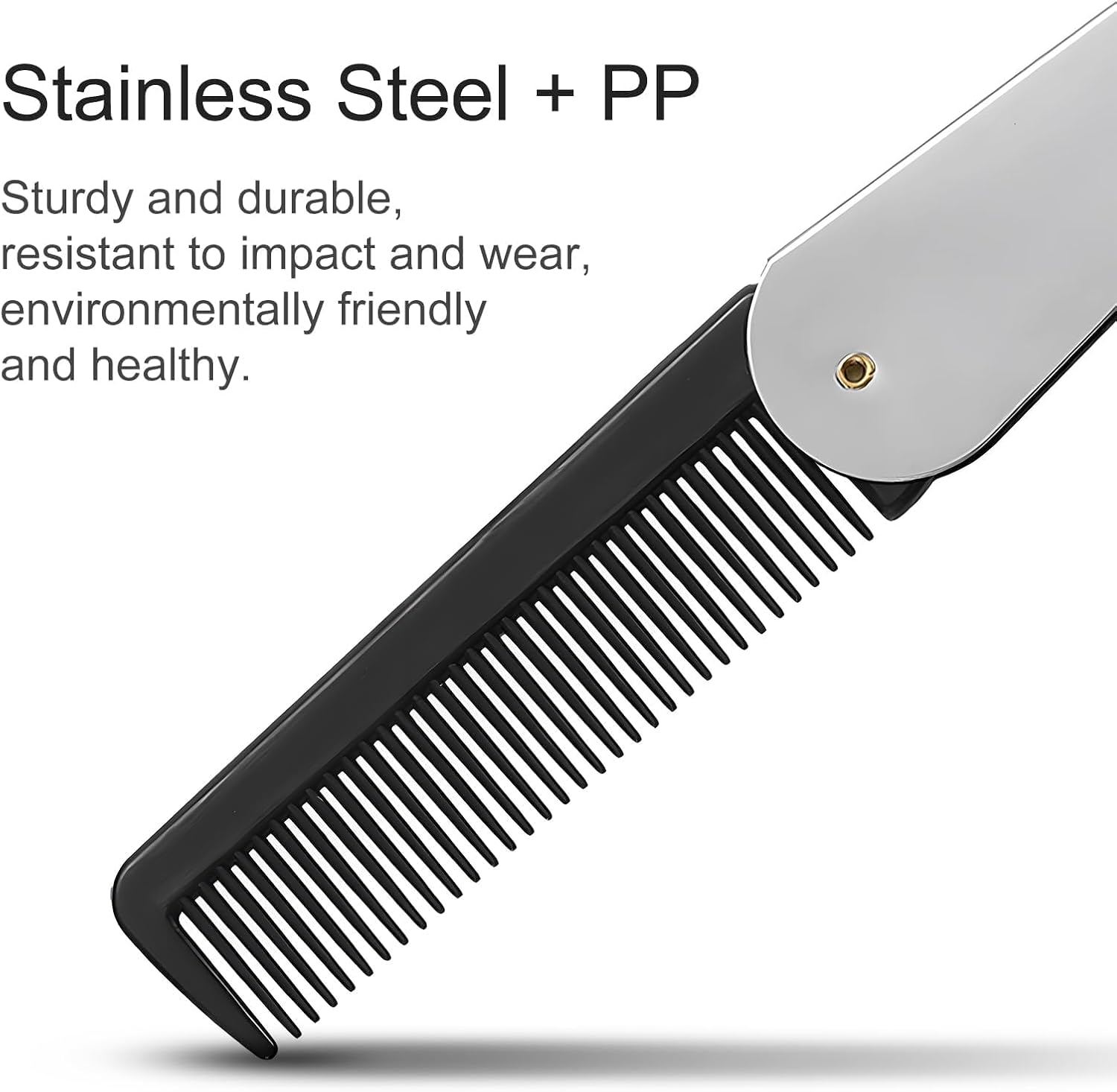 مادة عالية الجودة: هذا المشط القابل للطي مصنوع من الستانلس ستيل، مما يضمن جودة عالية تقلل الاحتكاك لتجربة حلاقة سلسة وخالية من الكهرباء الساكنة. مثالية لفك تشابك الشعر واللحية دون عناء.