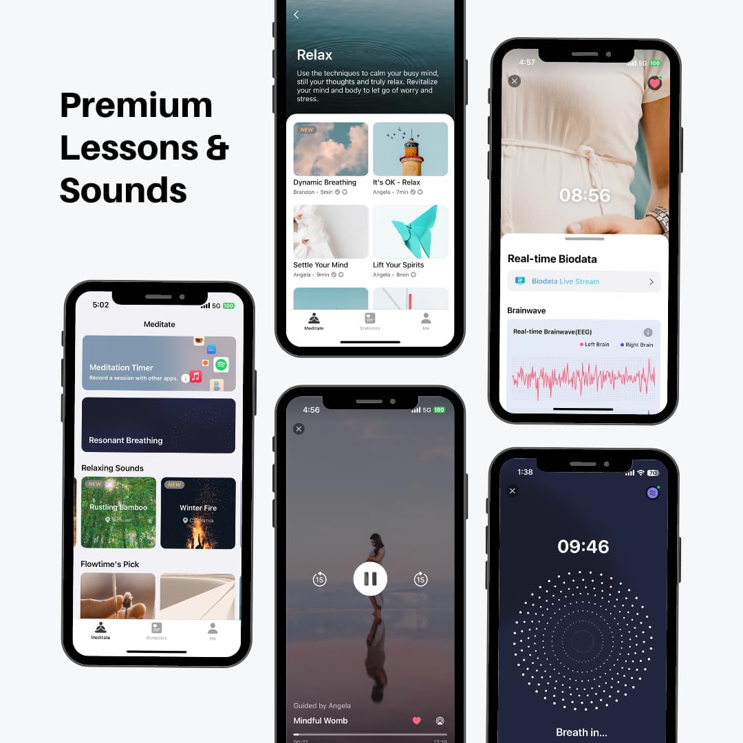 جرب مستقبل العافية الشخصية مع شريط الرأس فلو تايم. يجمع هذا الجهاز المبتكر بين التكنولوجيا المتطورة والراحة، مما يسمح لك بتتبع وتحسين صحتك العقلية والعاطفية وأنت مرتاح في منزلك.