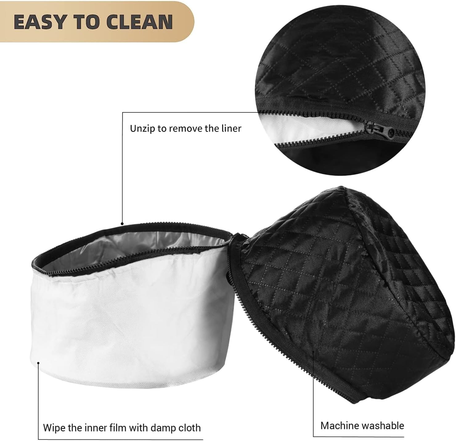حجم مثالي لصالونات الشعر المنزلية – غطاء التسخين للبلسم العميق، علاج الشعر عريض وعميق، مما يضمن لك تغطية الجزء الخلفي والأمام وحواف رأسك بسهولة. علاوة على ذلك، حتى المساحة المحدودة، سيكون هناك دائمًا مكان لهذه القبعة الحرارية المحمولة والمفيدة للشعر. كما أن الحجم الصغير يجعلها سهلة الحمل في أي مكان أثناء السفر.