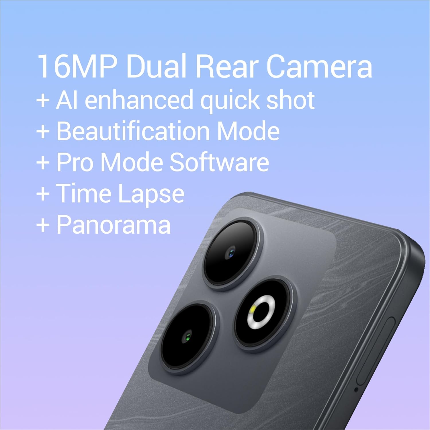 التقط كل لحظة: توفر الكاميرا المزدوجة بدقة 16 ميجابكسل صورًا واضحة ومفصلة بشكل مذهل، تلتقط كل فارق بسيط بوضوح مذهل، مع توفير خيارات تصوير متعددة الاستخدامات لأي إضاءة أو مشهد. تتيح لك الكاميرا الأمامية بدقة 8 ميجابكسل تغطية من صور السيلفي إلى مكالمات الفيديو.