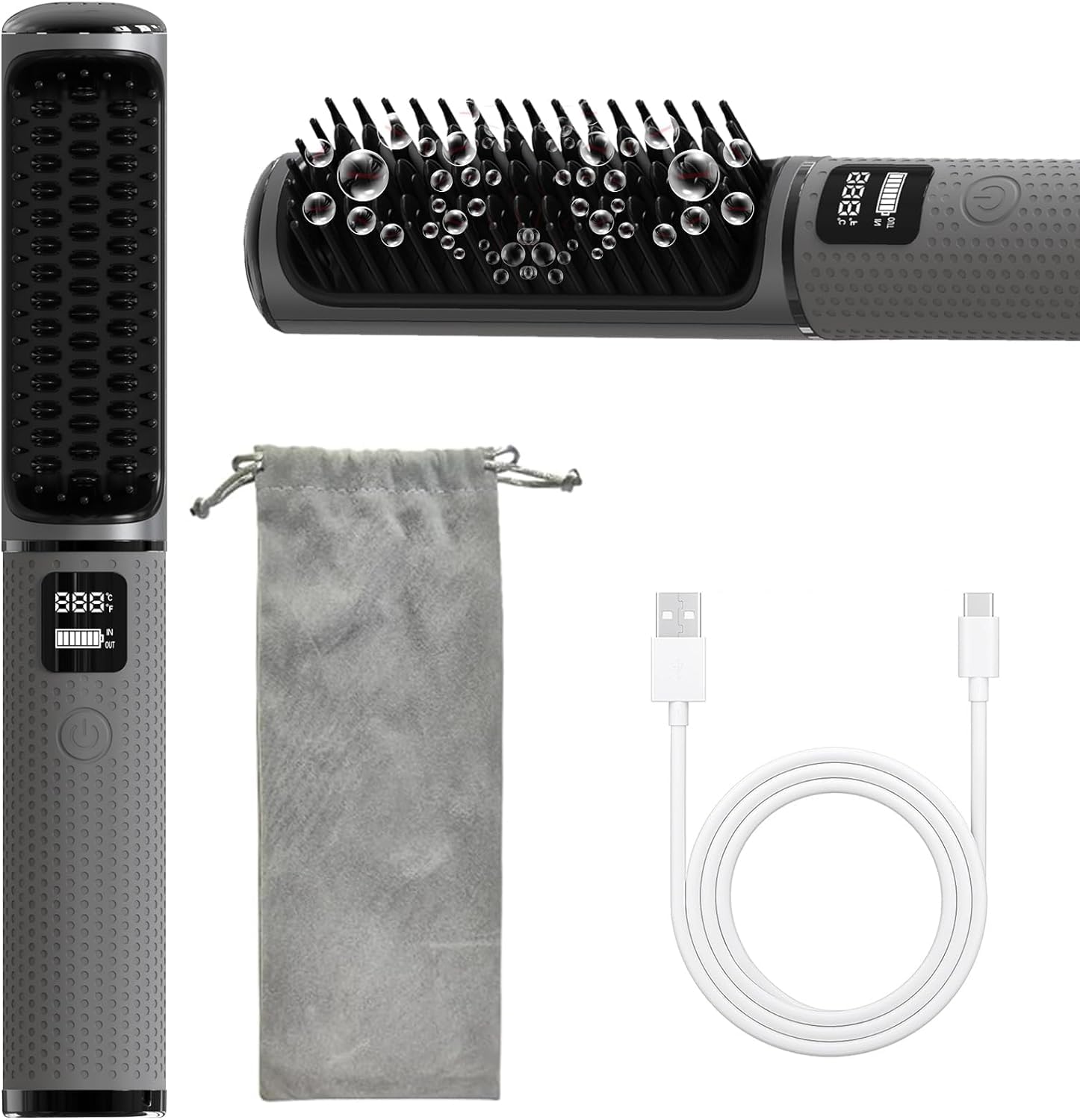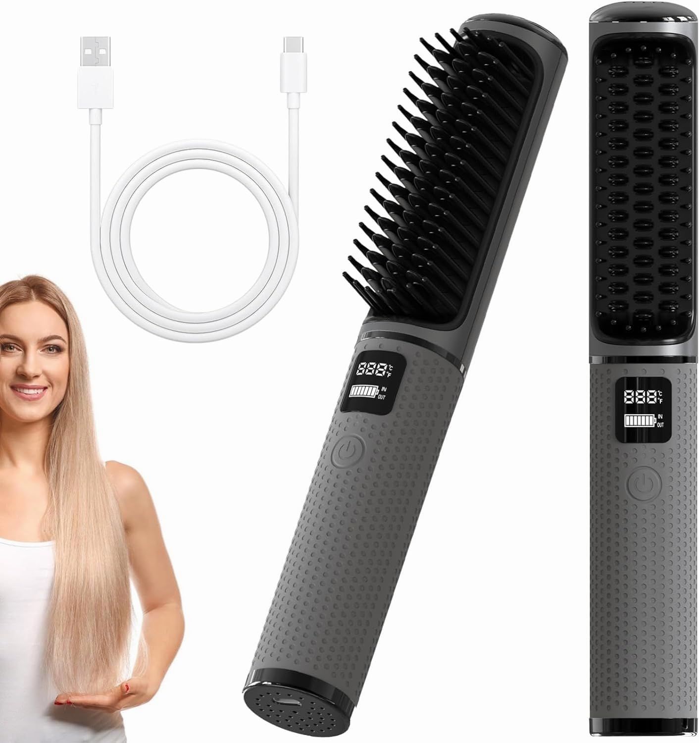 【فرشاة فرد الشعر اللاسلكية】: يحتوي المشط الساخن على بطارية مدمجة قابلة لإعادة الشحن (5000 mAh) لعمر بطارية طويل ويوفر شحن USB نوع C مريح. حجم صغير، خفيف الوزن، سهل الحمل في جميع أنحاء العالم. استخدمه في أي وقت وفي أي مكان، وتخلص من مشكلة الأسلاك.