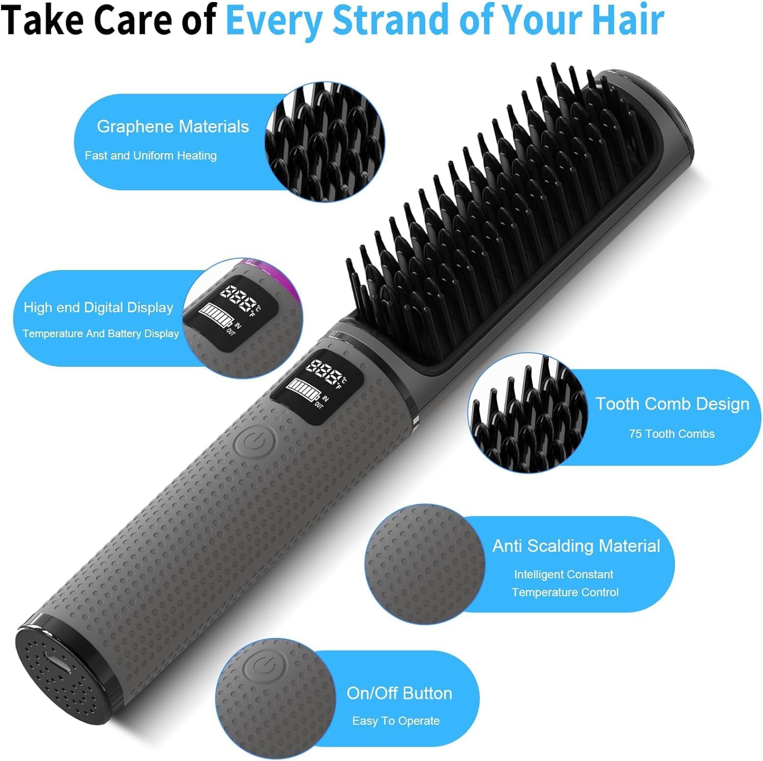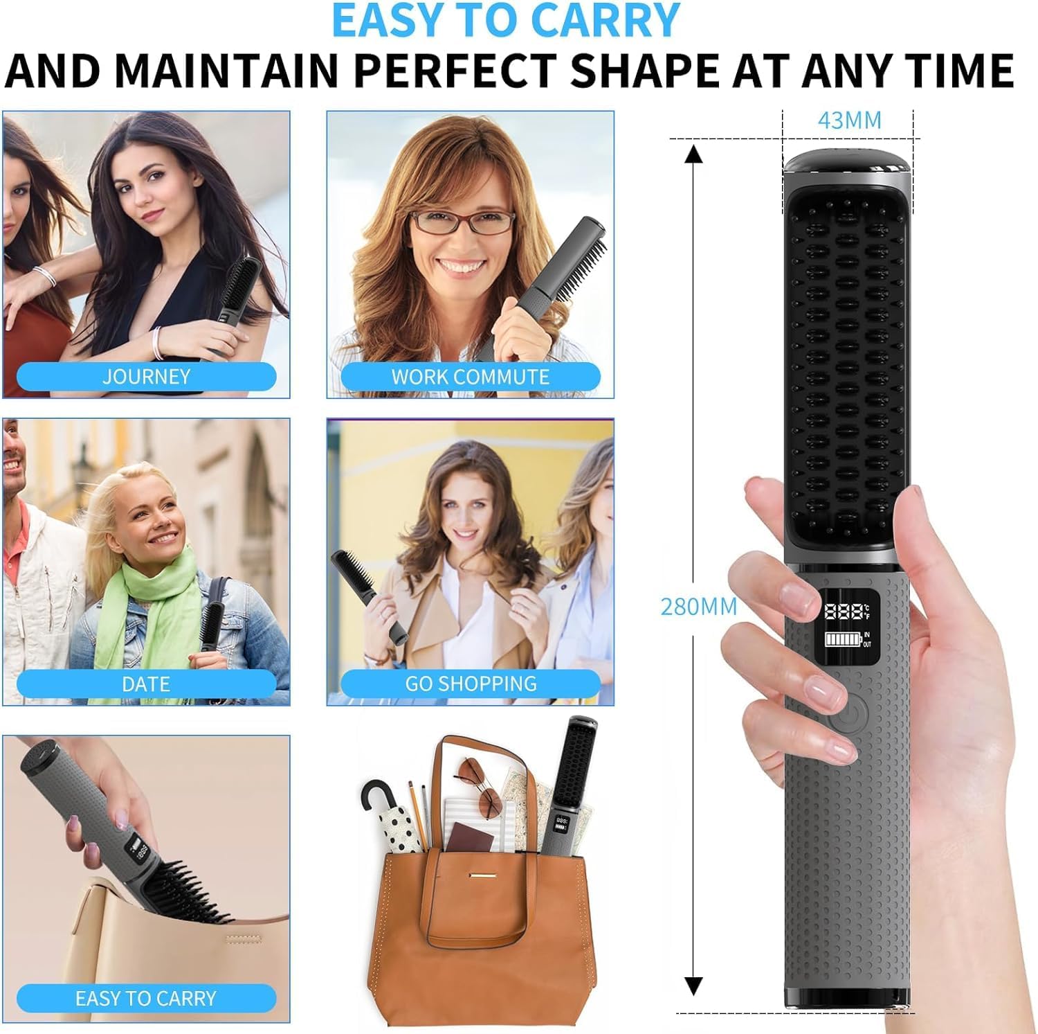 【تصميم آمن مضاد للحرق】مقبض فرشاة فرد الشعر مصنوع من مادة السيليكون، وهي آمنة وتمنع حرق اليد. سيتم إيقاف تشغيل المشط الساخن اللاسلكي تلقائيًا كل 20 دقيقة لمنع إهدار الطاقة أو التسبب في مخاطر السلامة عند عدم الاستخدام.
