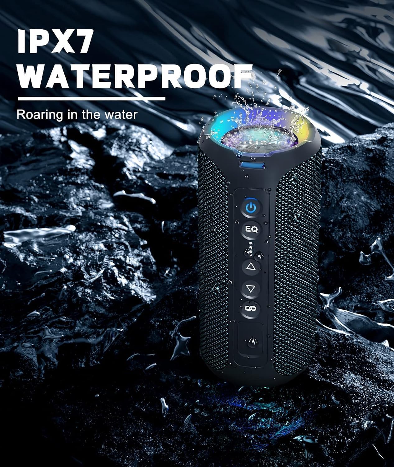 اورتيزان مكبرات صوت بلوتوث لاسلكية محمولة بصوت ستيريو عالي 40 واط مقاومة للماء بدرجة IPX7 مع بلوتوث 5.3 وصوت جهوري عميق واضاءة LED وميكروفون وستيريو لاسلكي حقيقي للمنزل والاماكن الخارجية