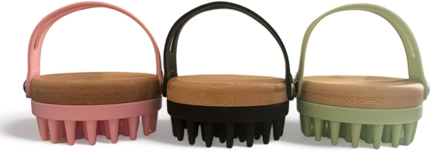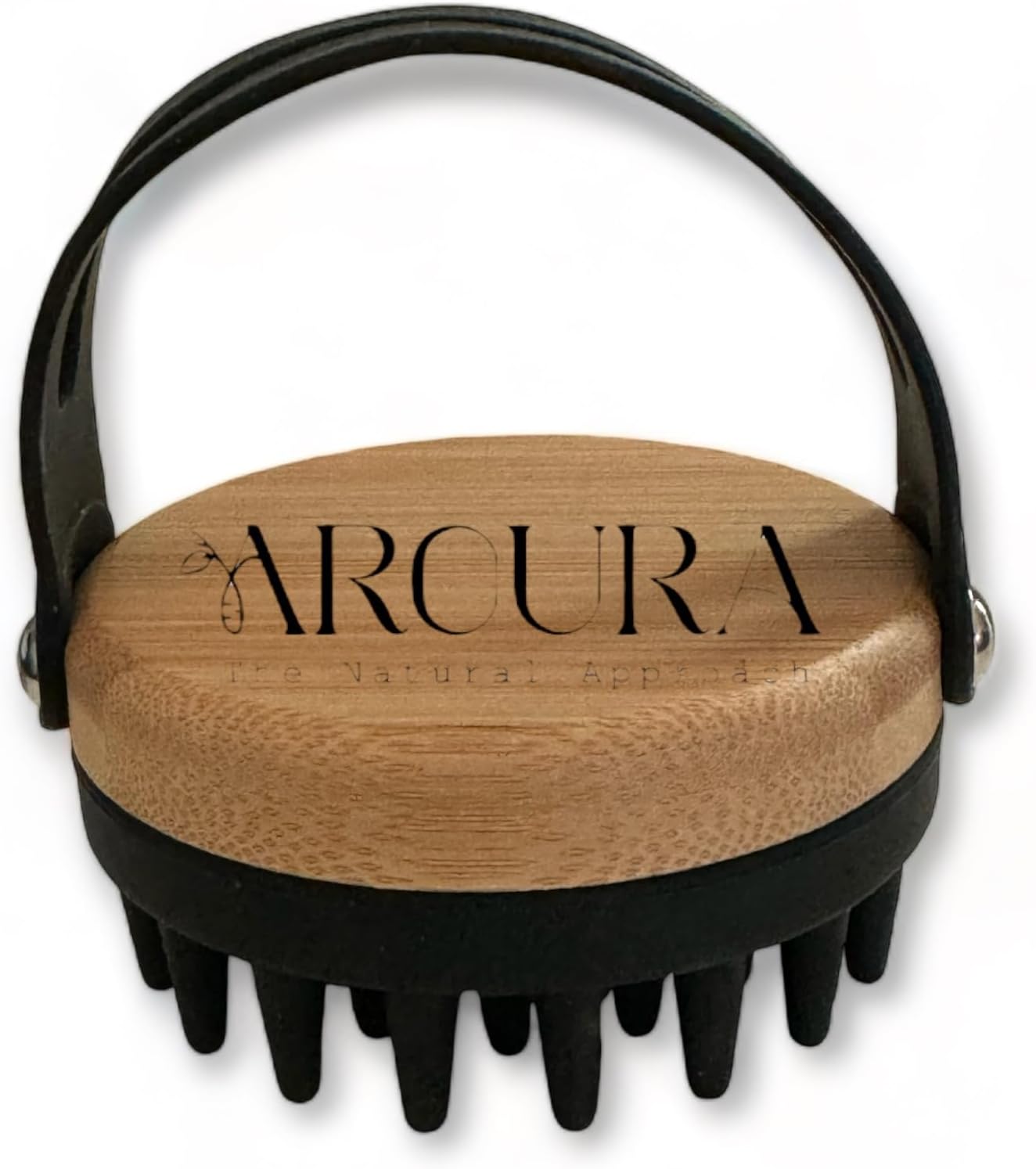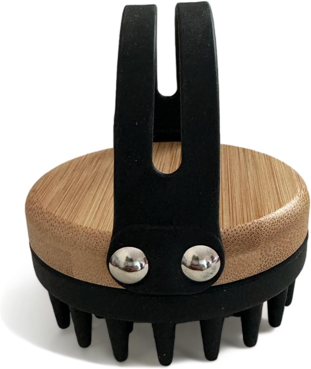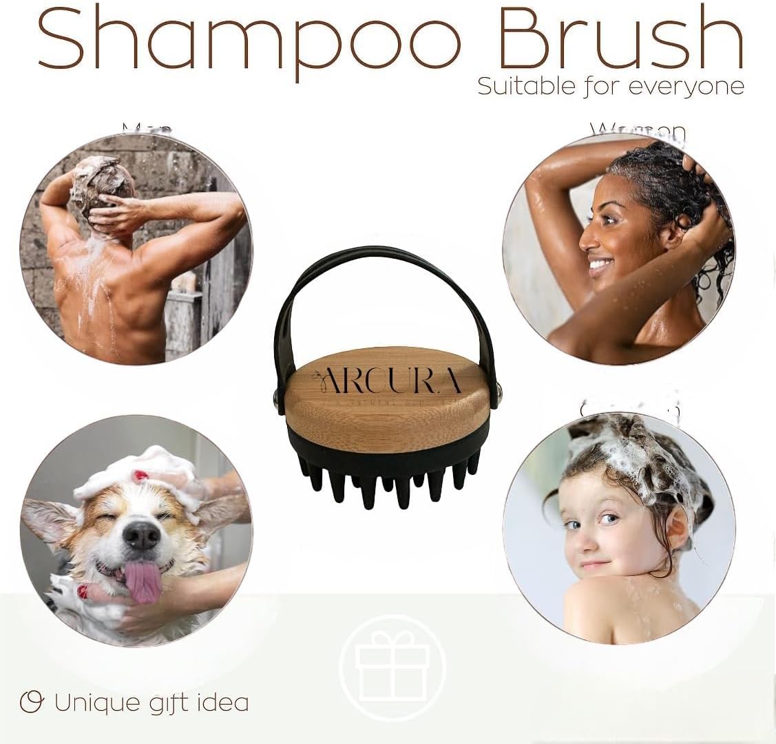 اورورا فرشاة شامبو فاخرة لتدليك فروة الرأس لنمو الشعر – شعيرات تقشير من السيليكون الناعم مع مقبض من الخيزران – اسود – قطعة واحدة