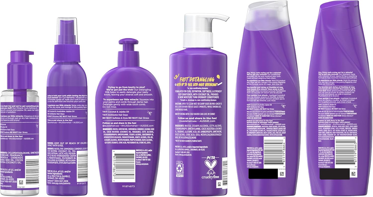 حافظي على تجعيد الشعر الخاص بك مع مجموعة كاملة من جميع الأشياء المجعدة بشكل مثالي. تأتي هذه المجموعة إلى رف حمامك مع كل ما تحتاجه لتجعيد الشعر المغذي والمرطب والرائع. ستحصل على شامبو وبلسم ميراكل كيرلز وجل بخاخ منعش كيرل وحليب فك تشابك الشعر وعلاج الشعر بالزيت المجعد، بالإضافة إلى بلسم ميراكل كيرلز العميق في 3 دقائق. أخيرًا، انتهى بحثك عن روتين تجعيد الشعر المثالي. لقد وجدت تركيبات ستحبها. تركيبتنا غنية بالمكونات التي سيحبها شعرك، مثل زيت جوز الهند وزيت الجوجوبا. المكافأة: خالية من PETA على الحيوانات.