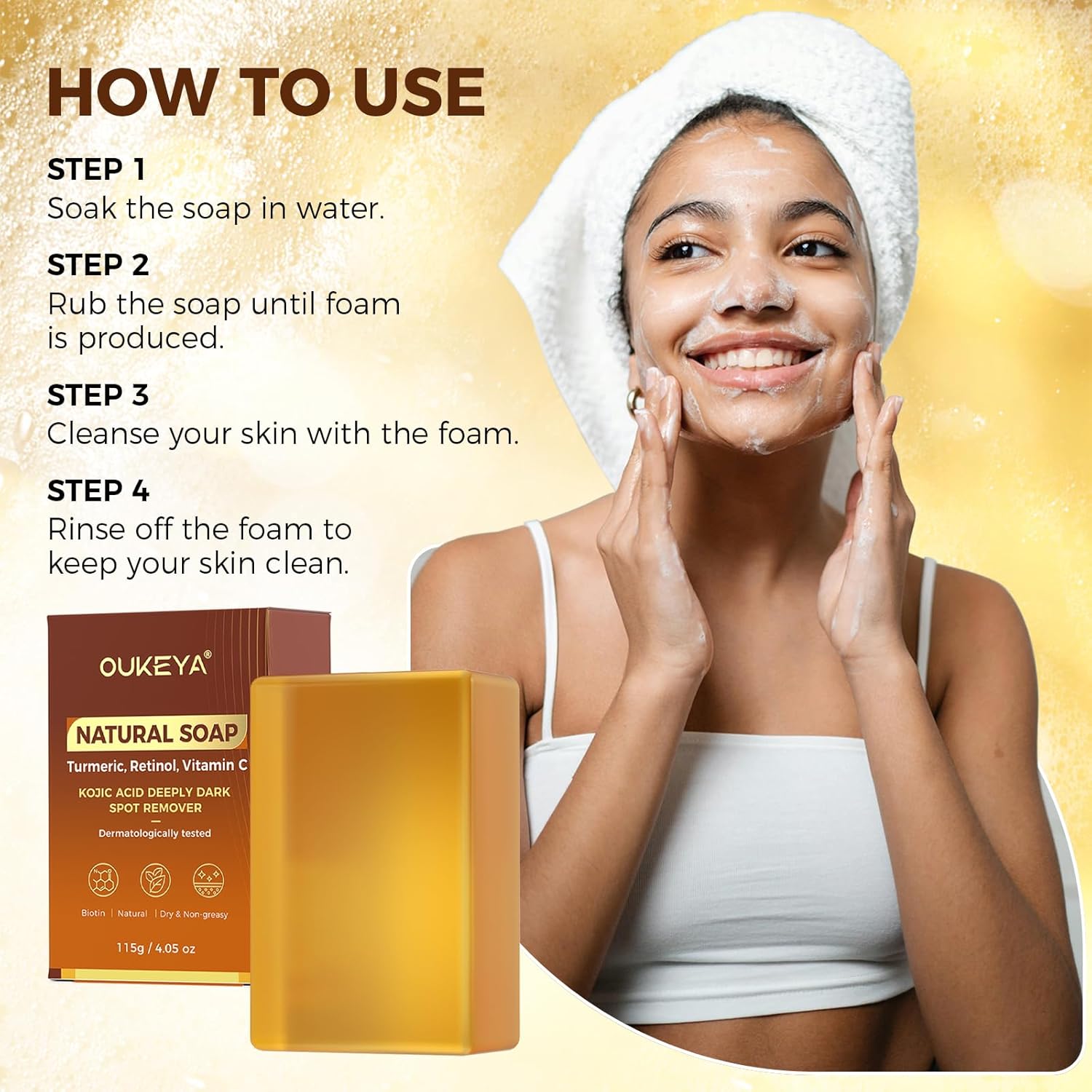 مصحح البقع الداكنة: سوسي من المركب الياباني لتصحيح البقع الداكنة، صابون الكركم الخاص بنا يعزز لون البشرة للحصول على بشرة متوازنة ومشرقة. مناسب للاستخدام على وجهك ويديك ورقبتك ومنطقة البيكيني والفخذين الداخليين وتحت الإبطين.