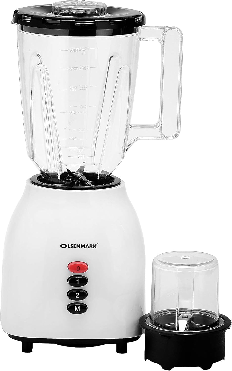 اولسين مارك خلاط متعدد الوظائف 2 في 1 OMSB2361، طاقة 300 واط، شفرات من الستانلس ستيل، تحكم بسرعتين مع نبض، برطمان 1.5 لتر، برطمان مطحنة مع حماية من الحرارة الزائدة وقفل امان