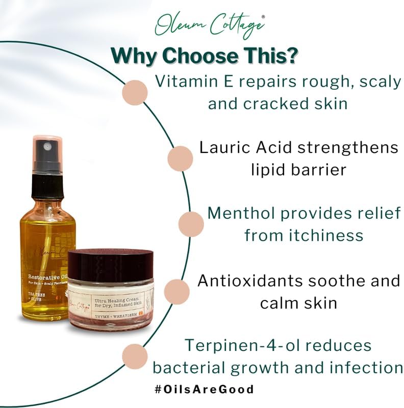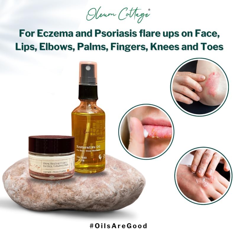 اوليومك كوتيج حزمة العناية بالبشرة للرقع الصغيرة على الجسم للاكزيما والصدفية والتهاب الجلد | تحتوي على زيت ترميم وكريم علاجي فائق | يقلل من الحكة ويهدئ التوهج
