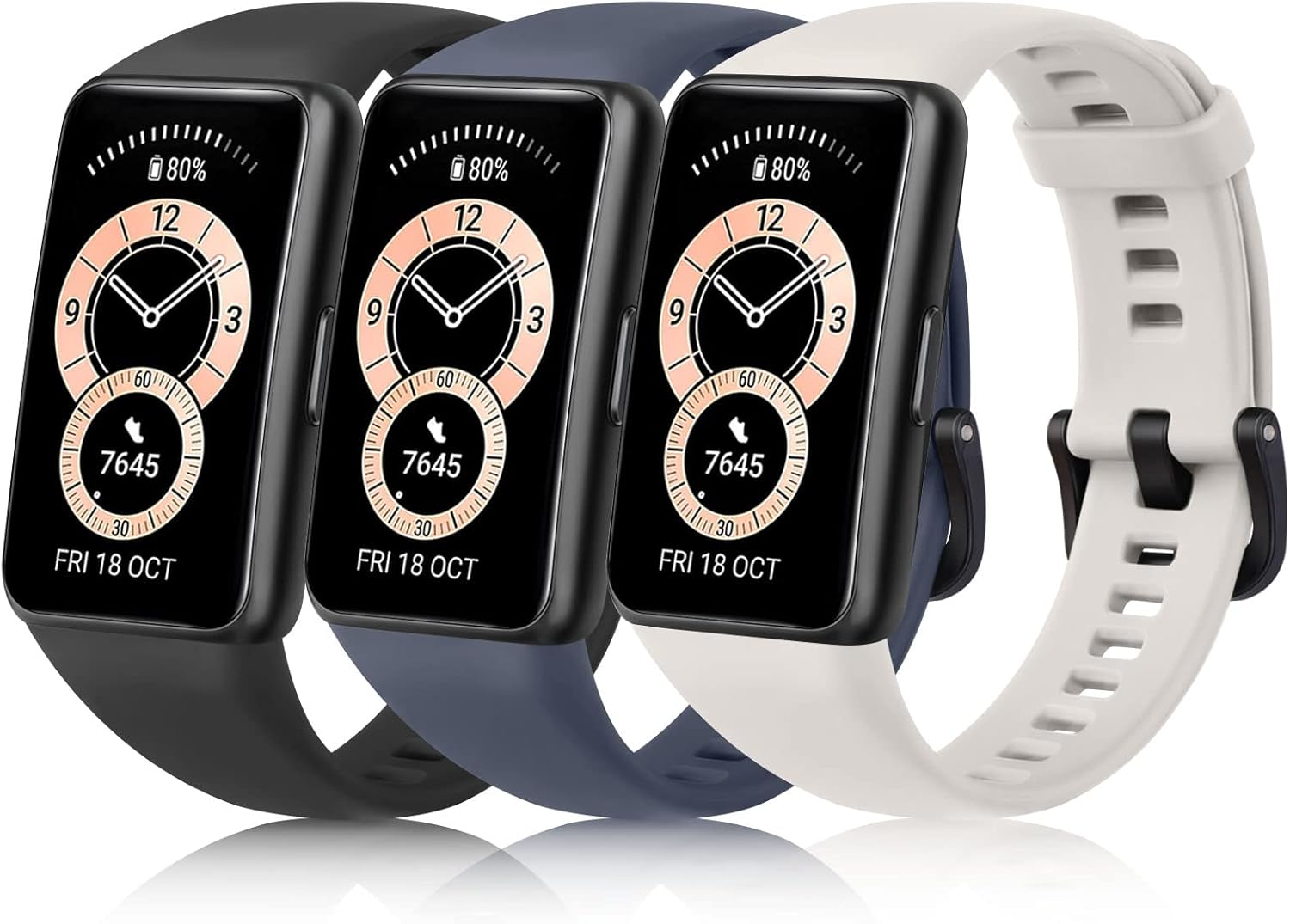 اوميدا 3 قطع من الاساور الاحتياطية المقاومة للماء من السيليكون وسوار رياضي جيد التهوية، متوافق مع هواوي باند 6 وباند 6 برو، سوار هونر باند 6 (اسود / ازرق ميدنايت / رمادي فاتح)