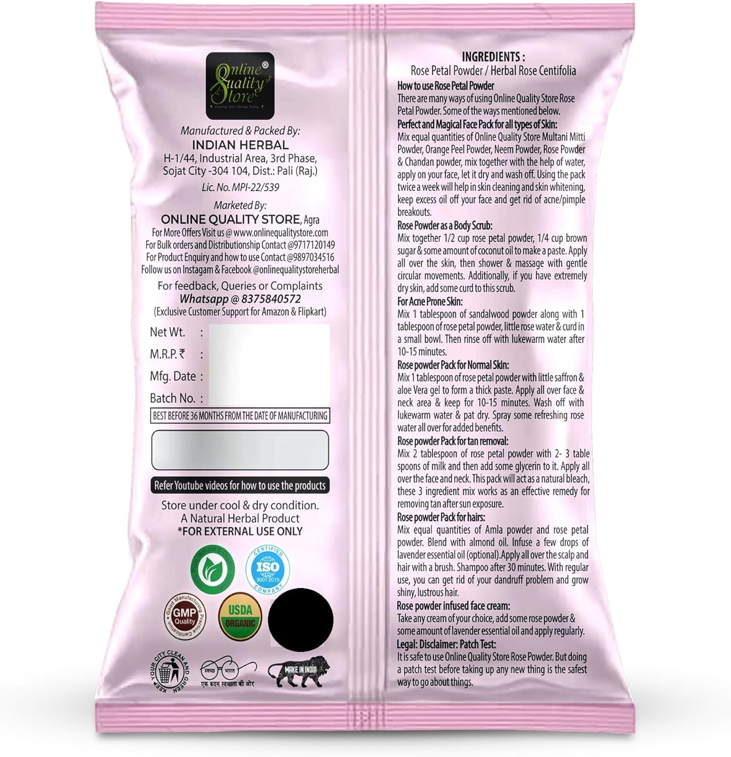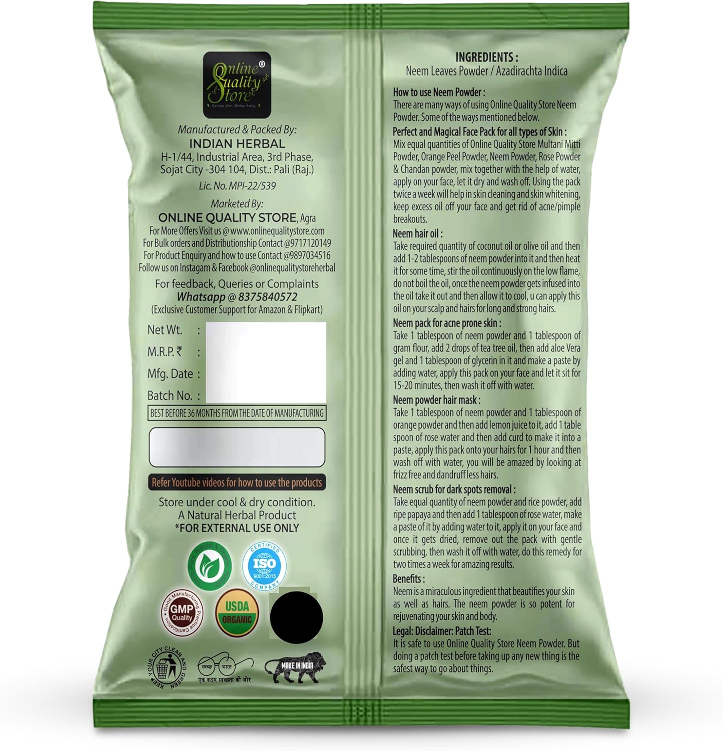 لا يحتوي مسحوق الأعشاب على مواد كيميائية أو معادن أو مواد صناعية أو إضافات أخرى ضارة للبشرة
