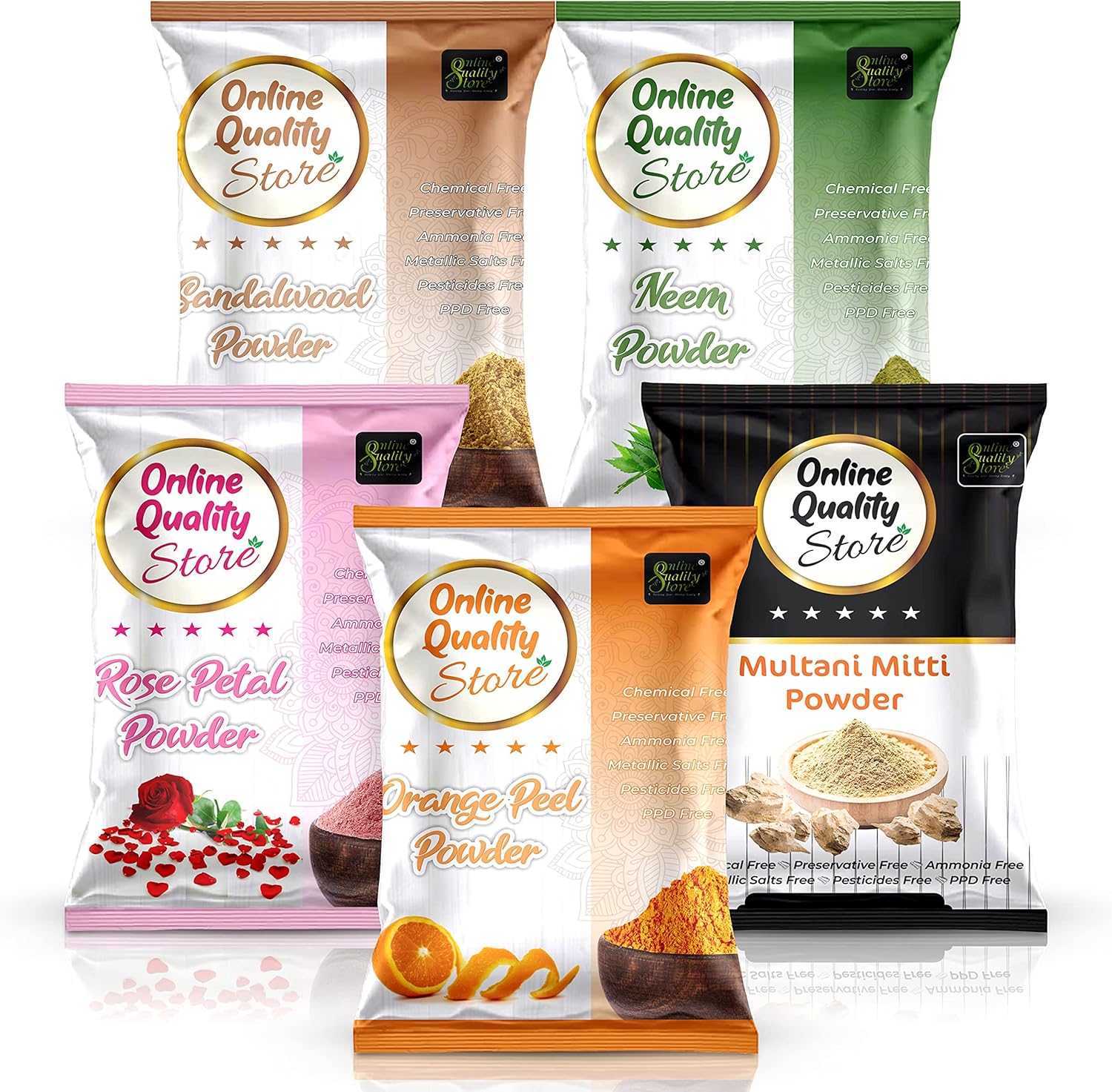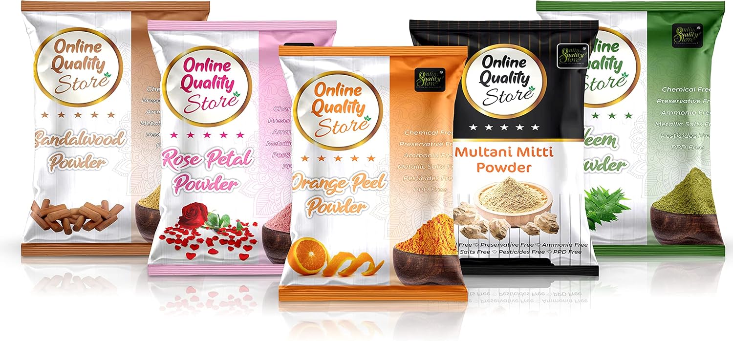اون لاين كواليتي ستور ميتي ملتاني عضوي نقي 100% (200 غرام) + مسحوق شاندان (50 غرام) + مسحوق قشر البرتقال (50 غرام) + مسحوق النيم (50 غرام) + مسحوق ورد (50 غرام) – اجمالي 400 غرام لترطيب التنظيف