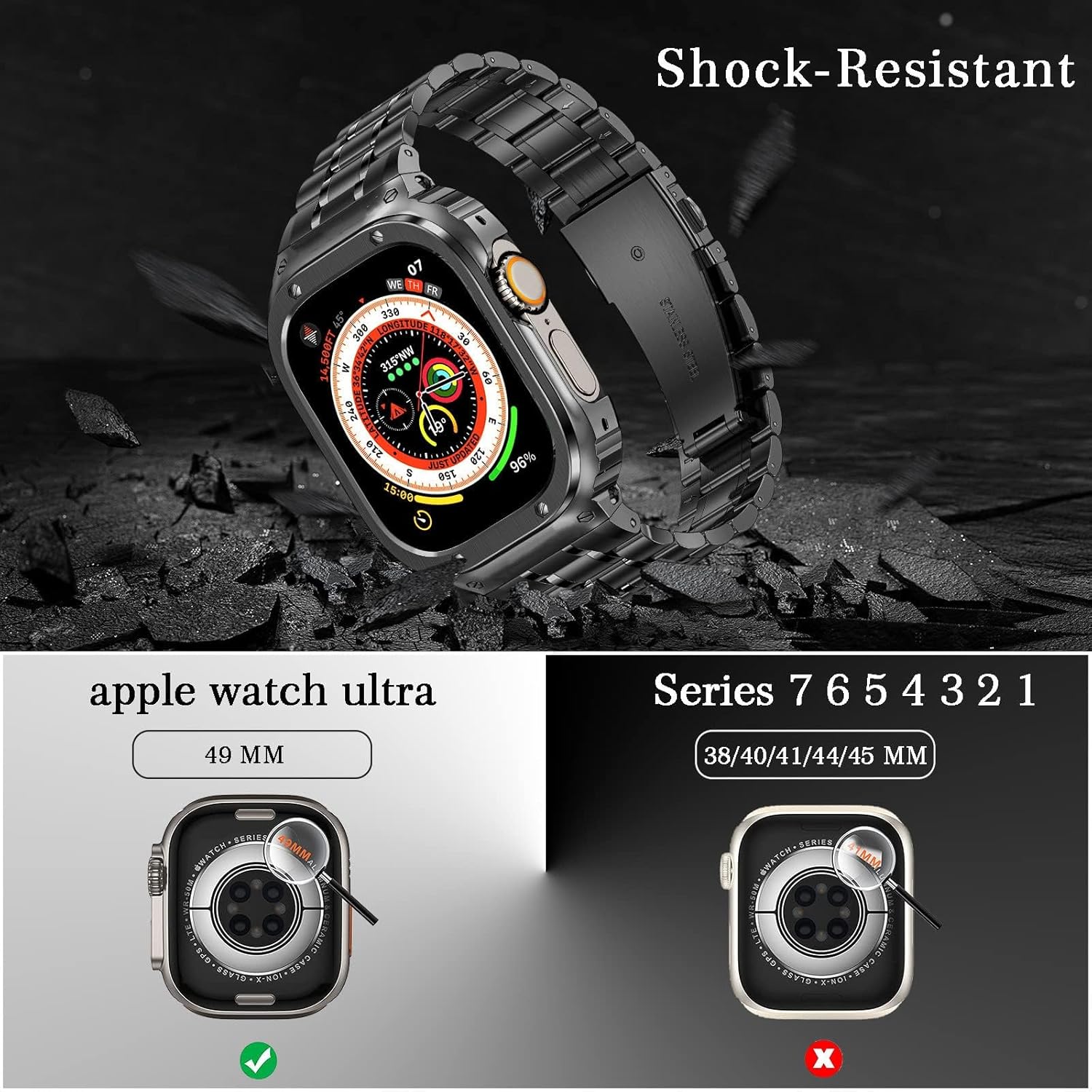 او اوزون سوار ساعة من الستانلس ستيل مع جراب متوافق مع ساعة ابل سلسلة 9/8/7 (45 ملم)، سوار معدني وغطاء واقي متين ممتص للصدمات لسوار اي ووتش للرجال