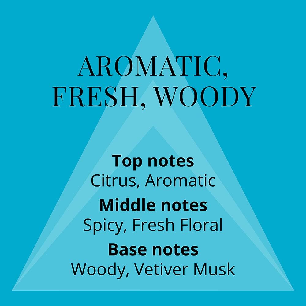 أخشاب طازجة وأنيقة وغنية – روائح عطرية رائعة من اليوسفي والليمون والنعناع الأخضر الطازج مع قلب محير من الكزبرة والزنجبيل ورائحة الفلفل المنعشة تعمق بخشب الأرز وجوزة الطيب واللابدانوم الغني المغلف بقاعدة عنيدة ذكورية من العنبر والبخور والبتشول وخشب الصندل.