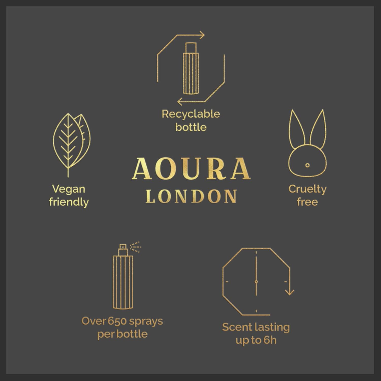 رائحة تدوم طويلاً – يحتوي كل بخاخ للجسم سعة 100 مل من اورا على أكثر من 650 رذاذ، مما يمثل كمية تكفي 44 يومًا بناءً على 5 بخاخات 3 مرات في اليوم. يجب أن تدوم الرائحة لمدة 6 ساعات تقريبًا بعد الرش.