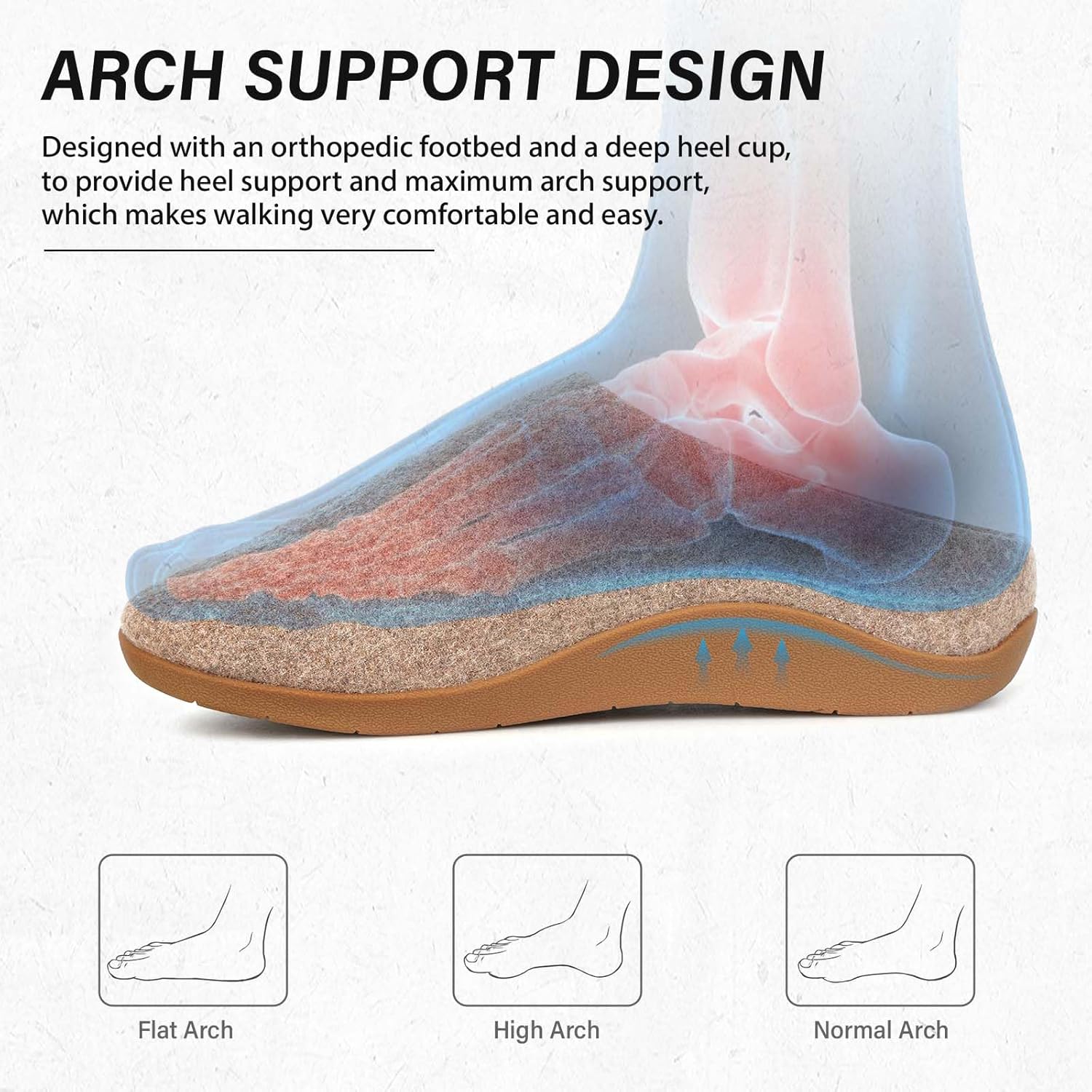 ايرجوفوت شبشب منزلي مع دعم قوس القدم، شبشب لتقويم العظام لتخفيف الام التهاب اللفافة الاخمصية، شبشب كلوج مريح من اللباد الصوفي، شبشب منزلي غير قابل للانزلاق للاستخدام الداخلي والخارجي للنساء والرجال