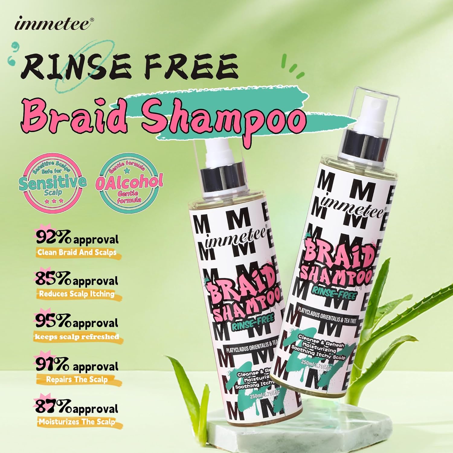 ايمتي شامبو بدون شطف للجدائل والجدائل مع الصبار وزيت الزيتون وزيت شجرة الشاي، بخاخ شامبو مرطب بدون شطف يزيل الروائح والحكة، 250 مل/8.8 اونصة