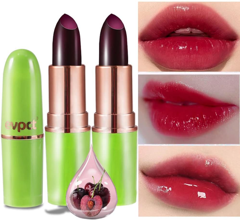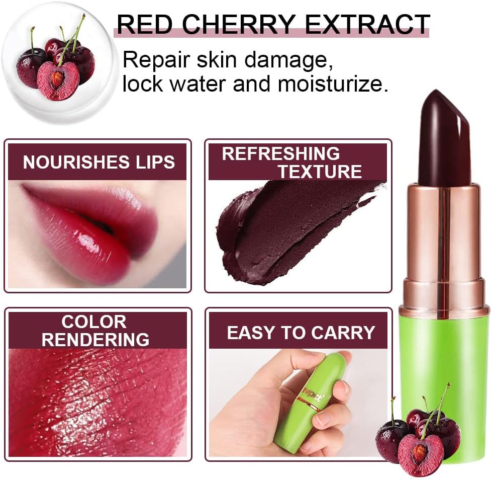 طقم مرطب شفاه متغير اللون احمر كرزي من قطعتين