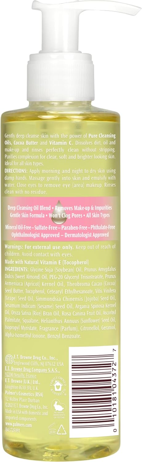 بالمرز زيت تنظيف الوجه بخلاصة زبدة الكاكاو | ثمر الورد الطبيعي وبذور العنب وزيت الجوجوبا وفيتامين E | ينظف ويضيء بعمق ويزيل المكياج والشوائب | لجميع انواع البشرة – 190 مل