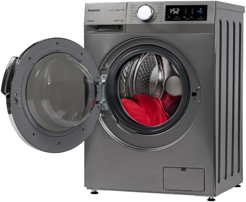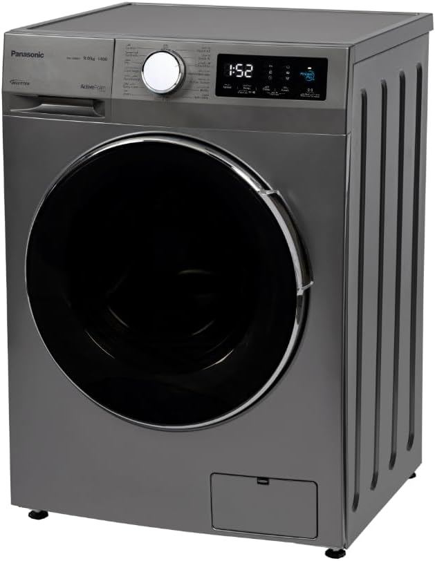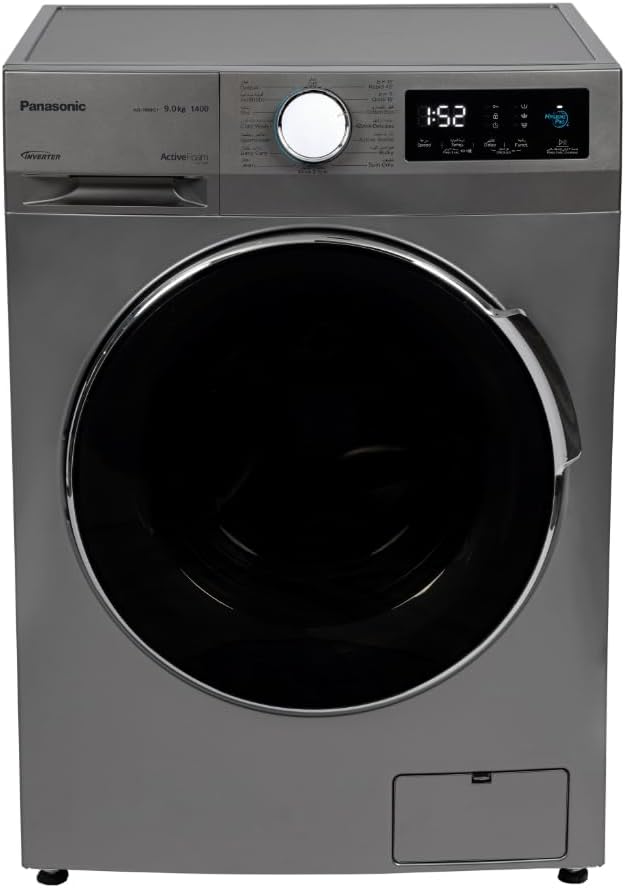 باناسونيك غسالة تحميل امامي سعة 9 كجم، ضمان محرك عاكس لمدة 10 سنوات، كفاءة 5 نجوم للمياه والطاقة، غسيل العباية عن طريق الغسيل اليدوي اللطيف/رغوة نشطة بواسطة اكتيف سبيد/ايقاف واضافة – NA18MG1L