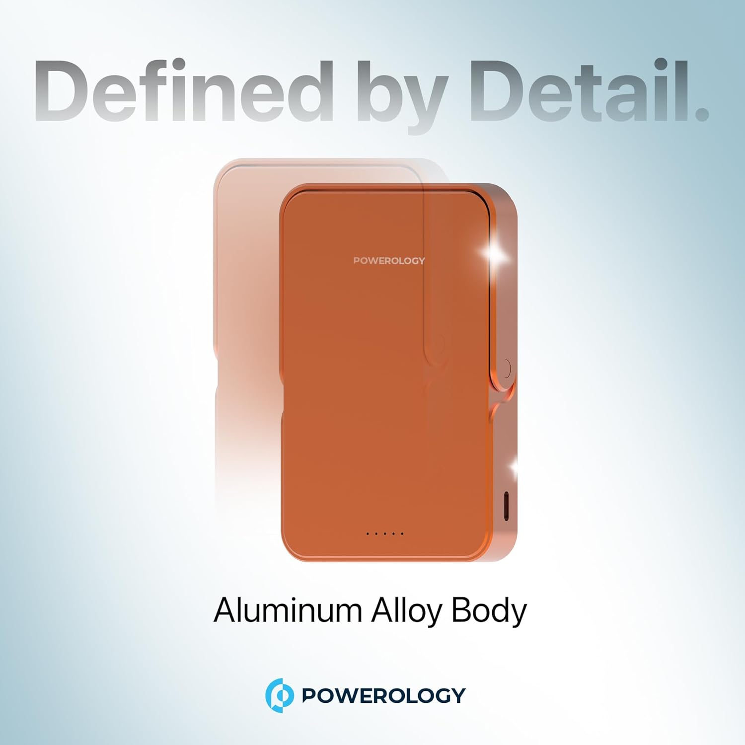 باورولوجي باور بانك مغناطيسي 10000mAh مع حامل، شحن سريع بي دي 20 واط، شاحن لاسلكي 15 واط، متوافق مع ماج سيف، حزمة بطارية محمولة لايفون 17-12 سيريز واندرويد والساعات الذكية وسماعات الاذن
