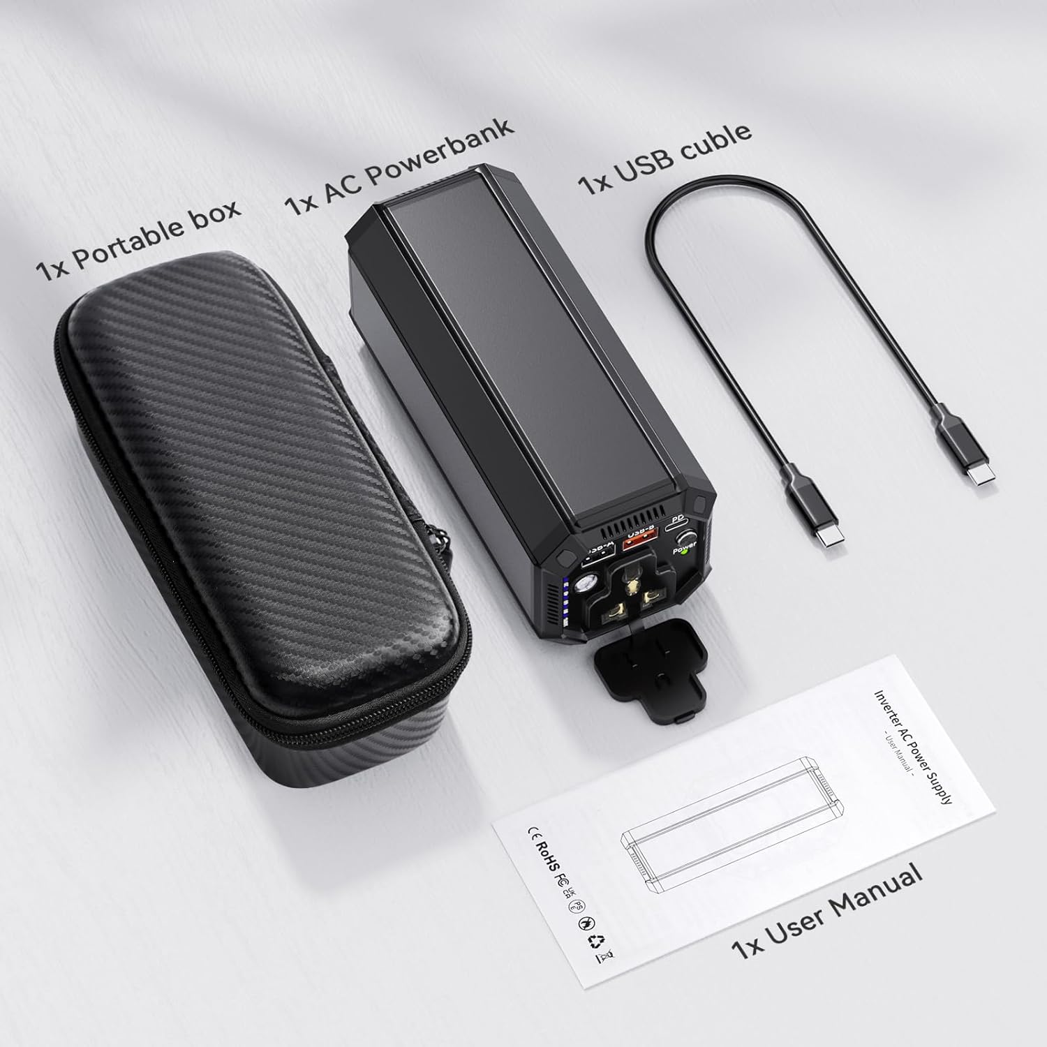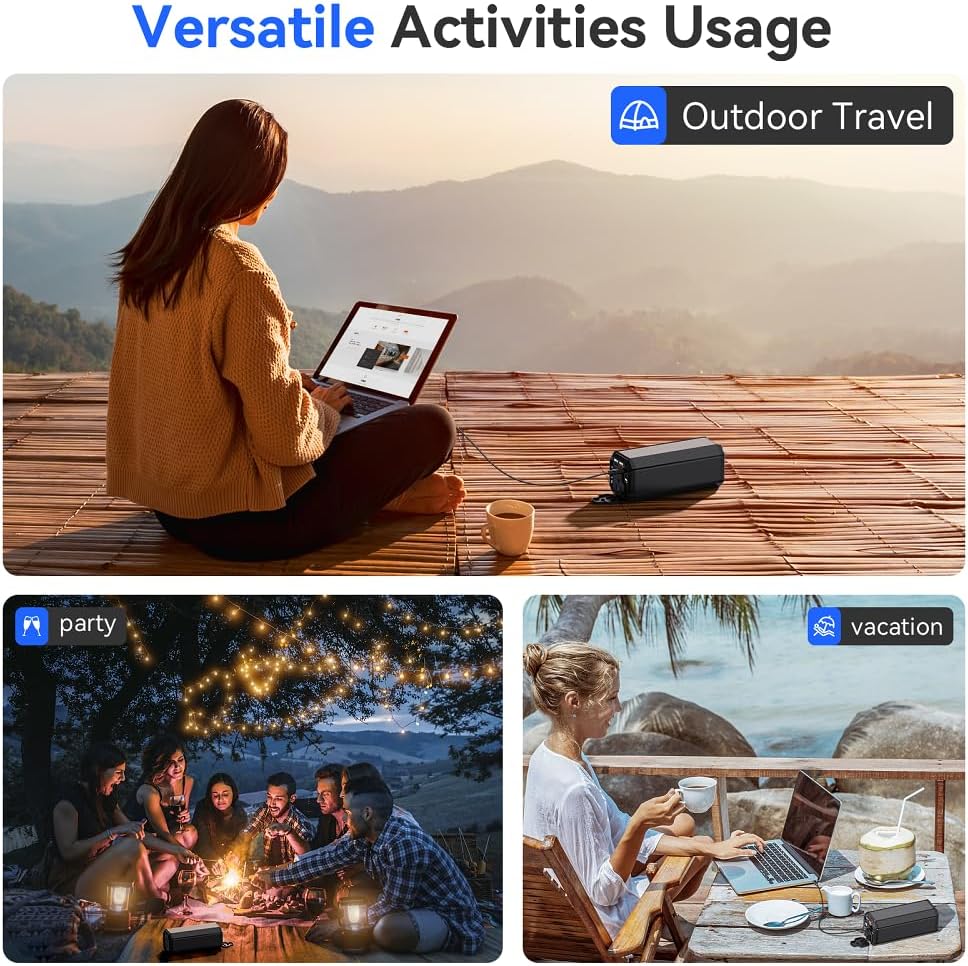 【باور بانك محمول بتيار متردد】مخرج تيار متردد يصل إلى 100 واط، والذي يمكن أن يلبي احتياجات الشحن والتحميل للأجهزة الكهربائية أقل من 100 واط. لا تقلق بشأن مقابس الحائط التي تحد من احتياجاتك من الطاقة، اشحن جهازك في أي وقت وفي أي مكان. إنه ضروري مثالي للأنشطة الخارجية والأعاصير وانقطاع التيار الكهربائي في حالات الطوارئ المنزلية.