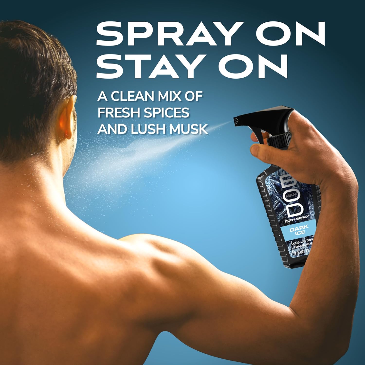 بودمان هي طريقة جديدة تمامًا للرجال لارتداء العطر. هذه البخاخات القوية والمثيرة لكامل الجسم تدوم طويلاً ولا تقاوم تمامًا، لذا فإن ما ترشه يبقى ثابتًا. دارك ايس هو عطر مائي قوي ونظيف مع روائح البرغموت الإيطالي وجوزة الطيب المحلوقة وأوراق الشاي الأخضر والعنبر البلطيقي ومسك البشرة الحسي.