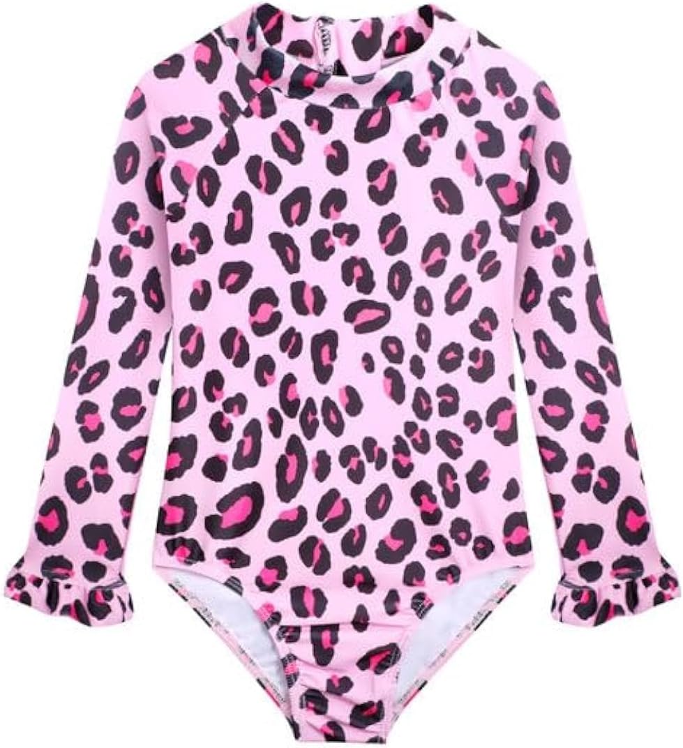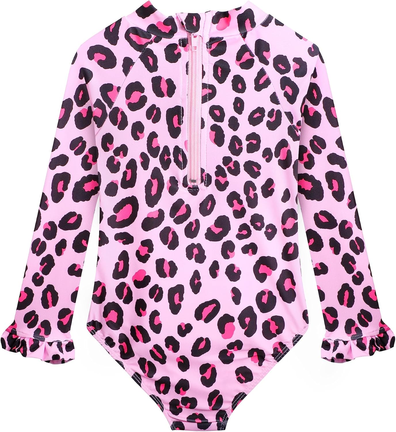بدلة سباحة للبنات من قطعة واحدة بأكمام طويلة للحماية من الطفح الجلدي، ملابس سباحة لطيفة لعمر 0-7 سنوات