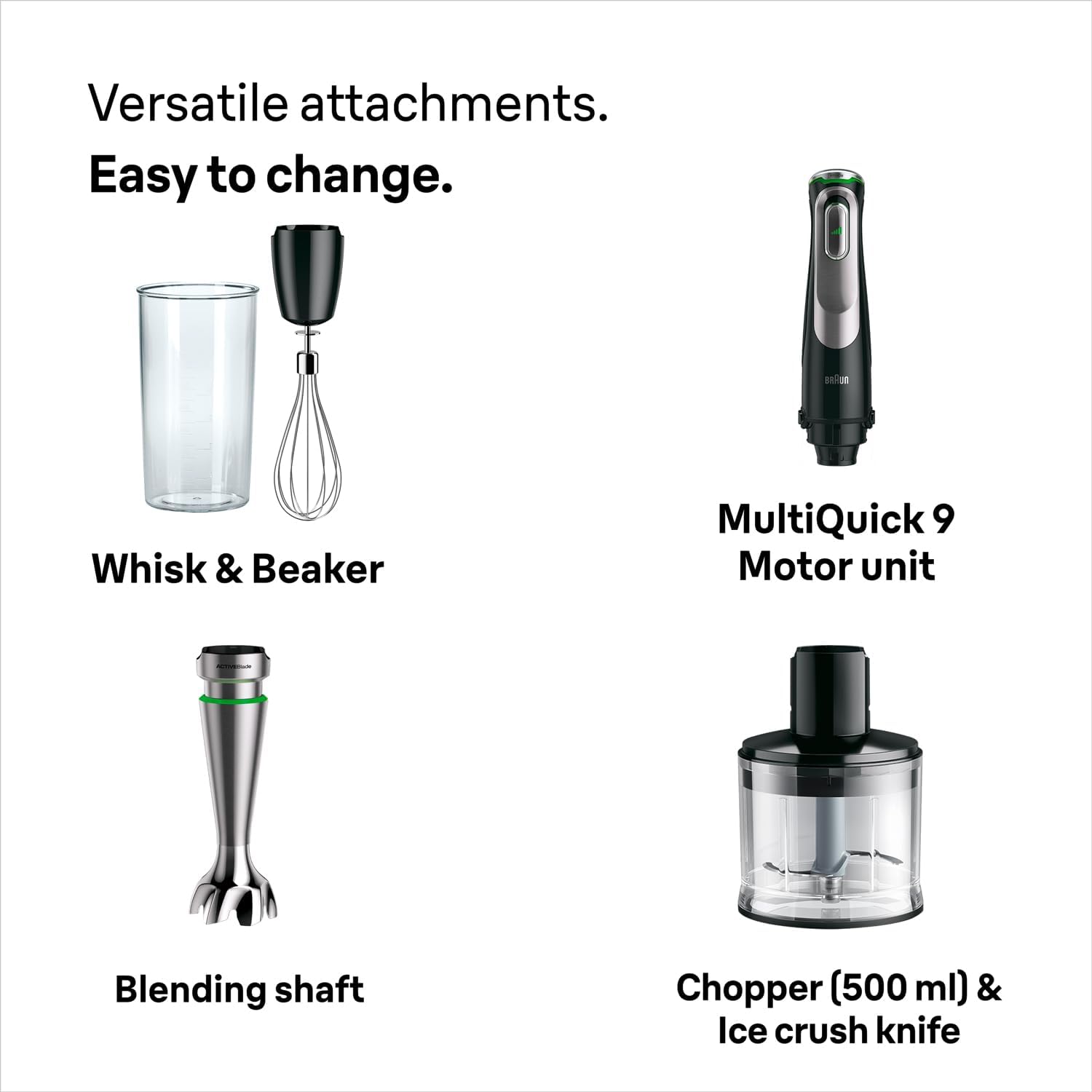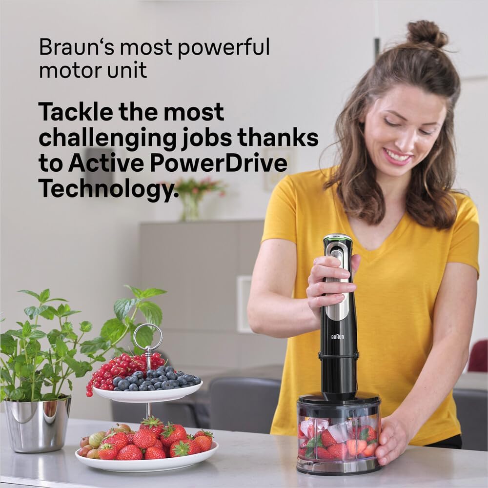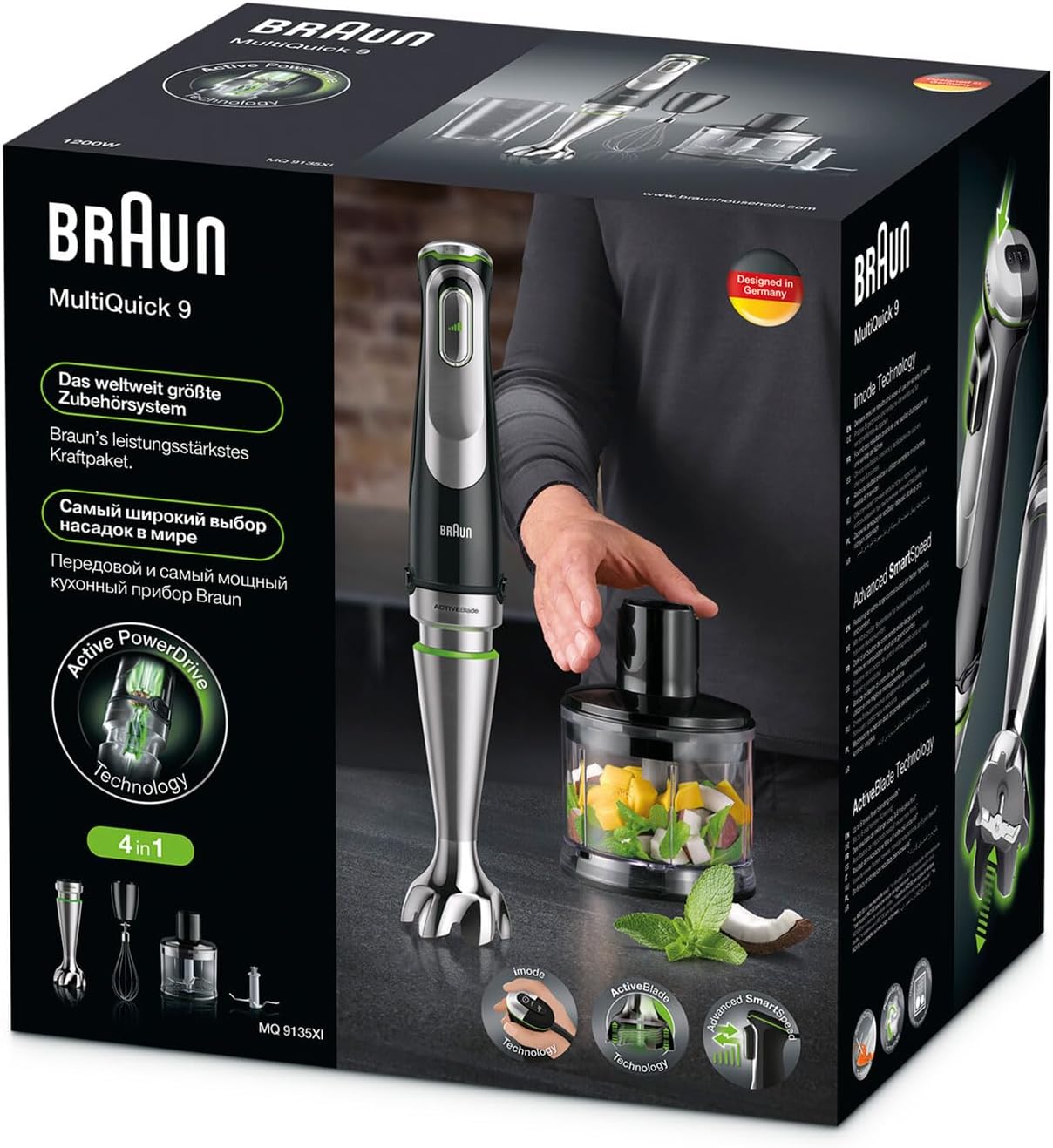 براون خلاط يدوي مالتي كويك 9، خلاط يدوي، محضر طعام XL، تقنية اكتيف باور درايف، مفرمة 500 مل، كوب 600 مل خالي من البيسفينول ايه مع غطاء، 1200 واط، 220-240 فولت، 50-60 هرتز، MQ 9135XI، اسود