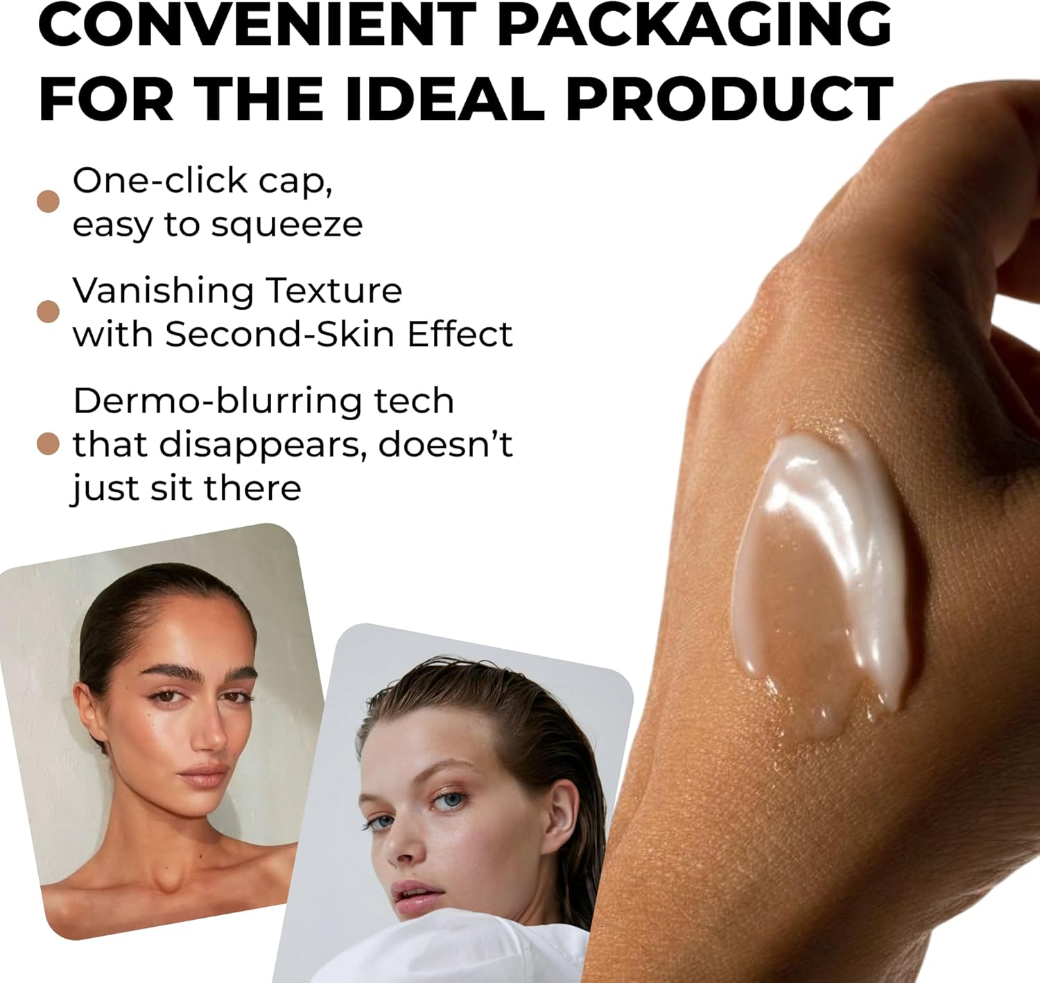 قاعدة خالية من الكعك: تركيبة من السيليكون تنعم المسام والخطوط الدقيقة على الفور، وتمنع التجاعيد والتقشر للحصول على مظهر يومي خالٍ من العيوب.