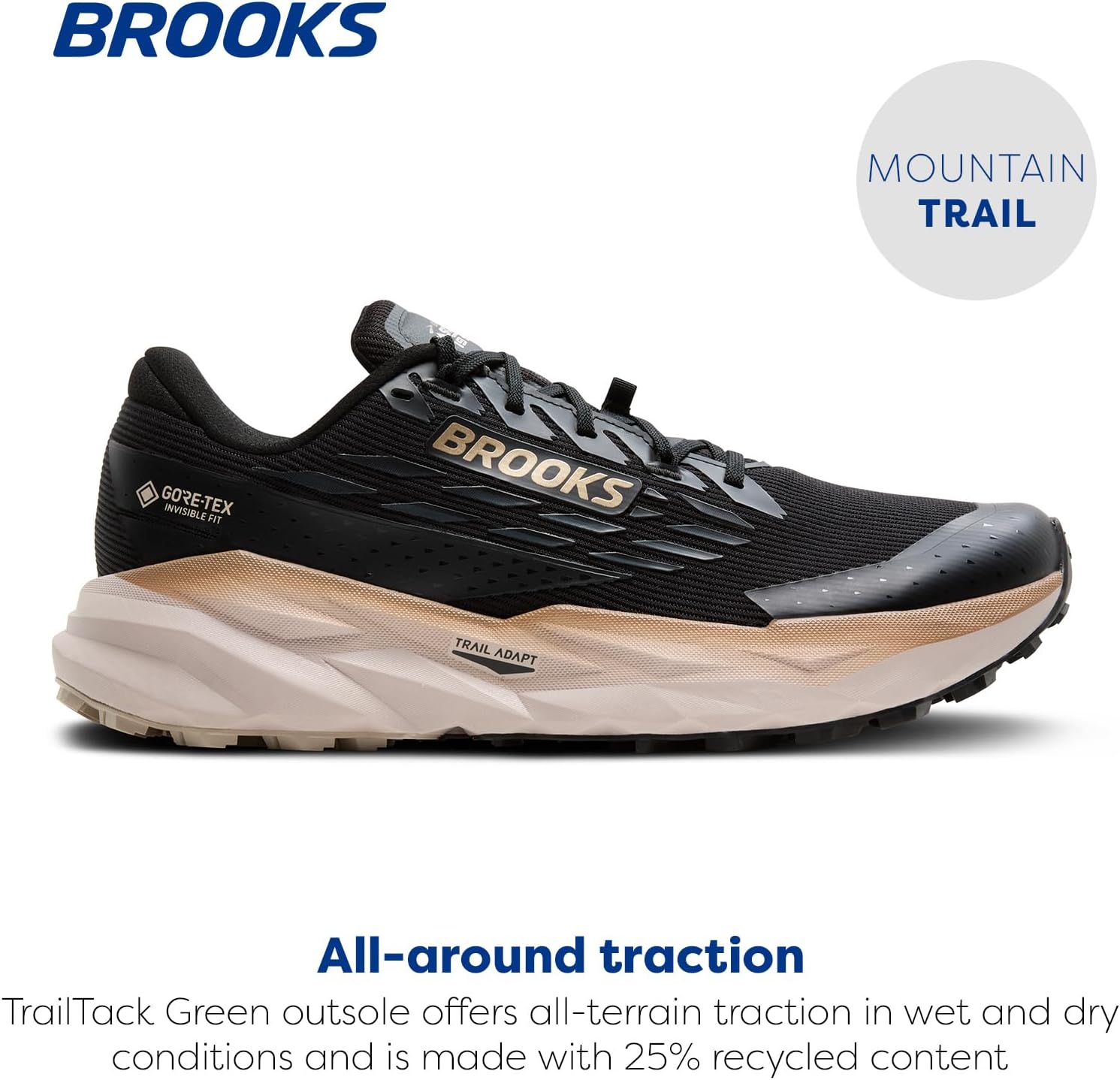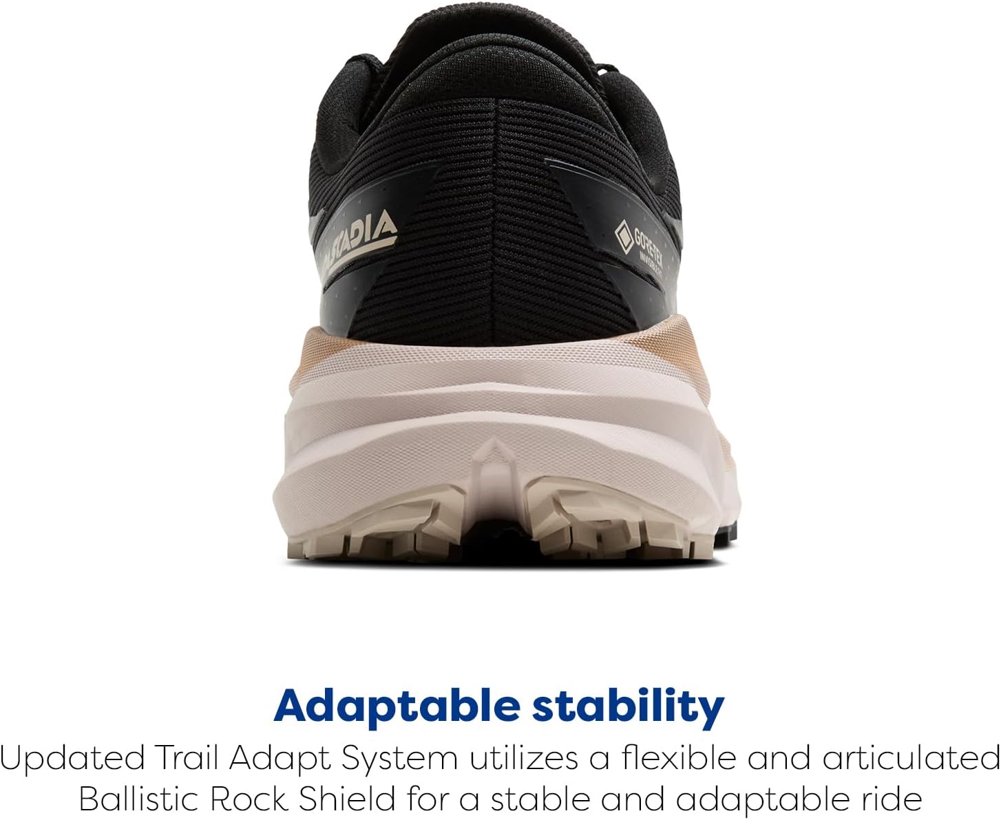 يتميز حذاء بروكس Cascadia 19 GTX بنظام Trail Adapt المحدث الذي يستخدم درع Ballistic Rock Shield المرن والمفصل الذي يندمج في النعل الأوسط DNA LOFT v3 من أجل قيادة ثابتة وقابلة للتكيف. يتم ربط مقاس جور-تكس غير المرئي مباشرة بالجزء العلوي للحصول على ملاءمة خفيفة ومرنة توفر حماية جيدة التهوية من العوامل الجوية، بينما تحافظ تقنية جور-تكس المقاومة للماء على قدميك مريحة وجافة. هذه الأحذية ذات الأربطة مصنوعة من نعل داخلي مطاطي وبطانة من النايلون. يتميز الجزء العلوي الشبكي بطبقات طباعة ثلاثية الأبعاد للحماية والراحة المرنة، بينما توفر بطانة دي ان ايه لوفت v3 المليئة بالنيتروجين راحة طوال اليوم. تم تصميم هذه الأحذية بنعل خارجي مطاطي تريل تاك الأخضر المعاد تدويره بنسبة 25% والذي يوفر احتكاكًا لجميع التضاريس في الظروف الرطبة والجافة. تصميم بمقدمة دائرية.
