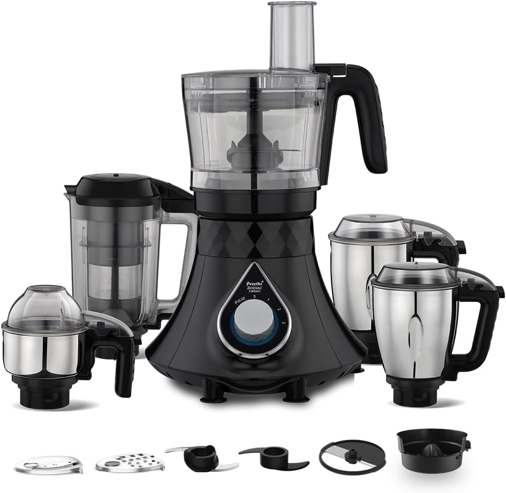 بريثي خلاط مطحنة كوزمو 750 واط 5 برطمانات من زودياك مطحنة الخلاط الأولى والأسرع في النرد. طحن بدون استخدام اليدين. آلية أمان ثلاثية. برطمان ماستر شيف + لمعالجة الطعام لتقطيع المكعبات وعجن عطا والتقطيع والبشر والتقطيع والفرم.